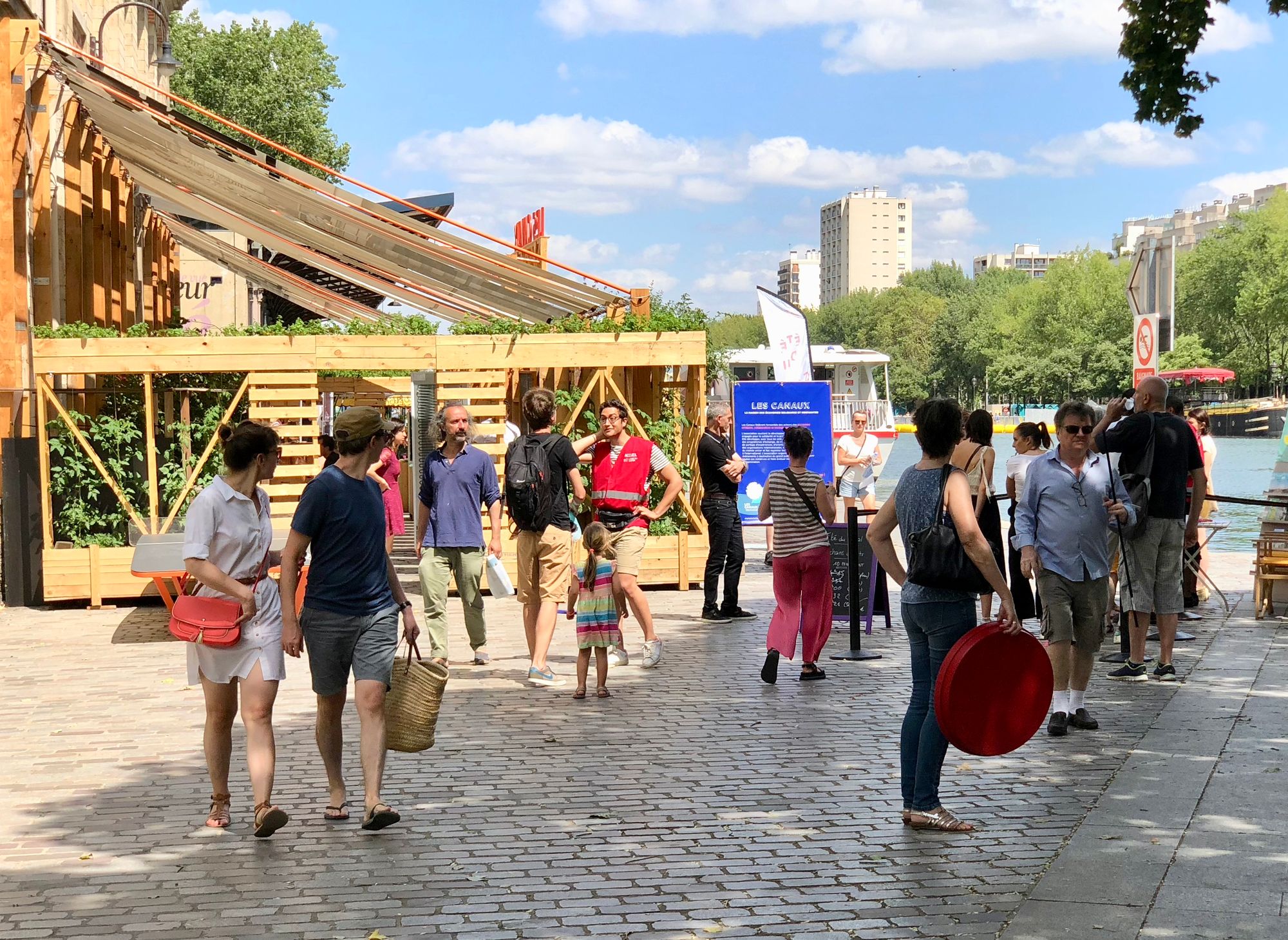 - Because the surrounding neighborhood is well-connected to the Bassin de la Villette, the activity on nearby bridges and streets adds to and supports the social life happening along the waterfront.
