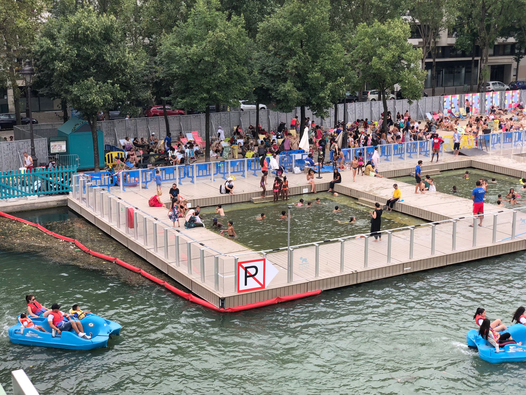 Meanwhile, active programming brings energy to the space, with boating and swimming in large pools playing the role of a central feature along the canal. The variety of water activities is a large part of what makes the Bassin so popular.