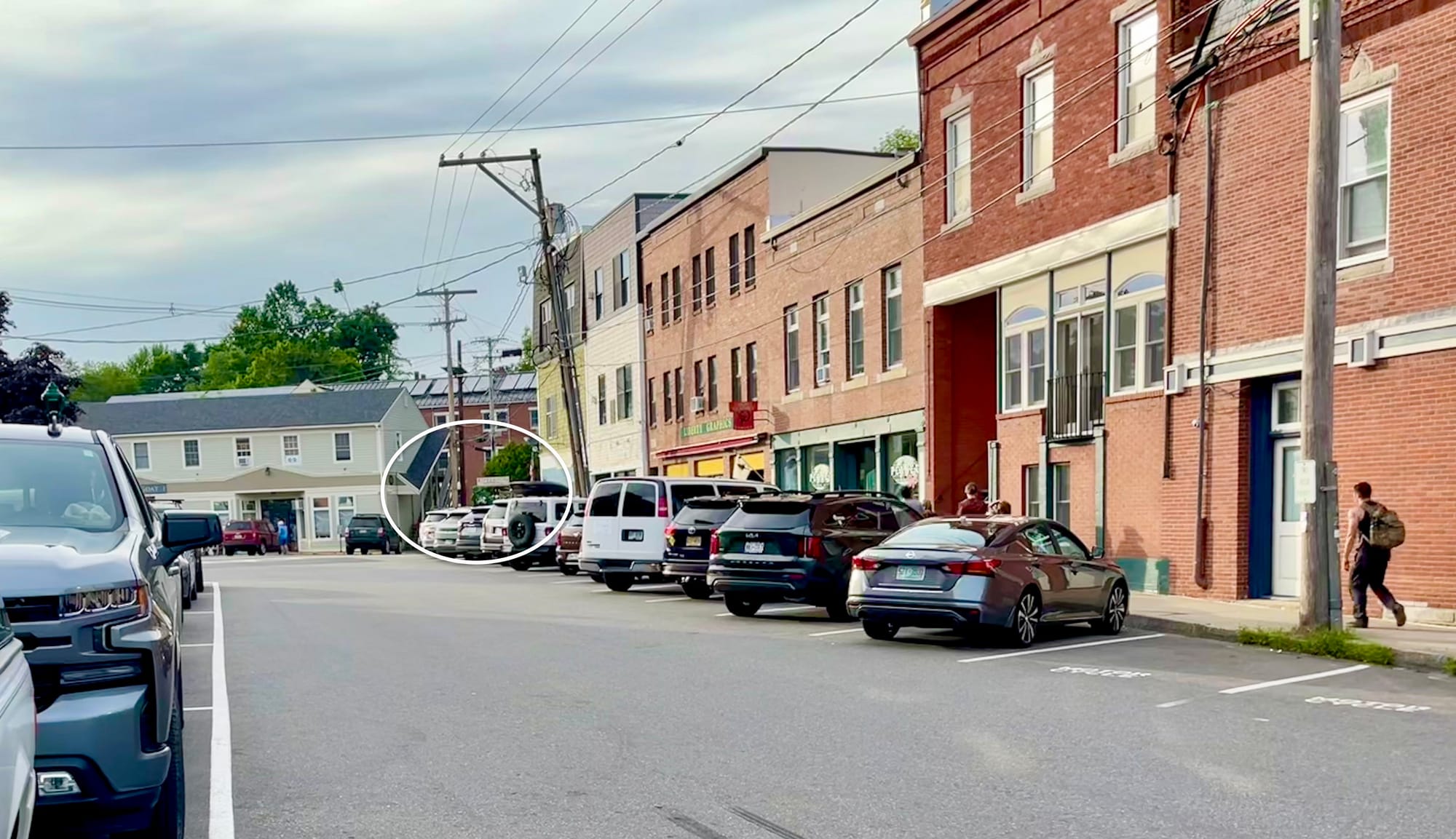 This key intersection is the gateway to most of Camden's best assets and amenities such as downtown neighborhoods, historic buildings, and the waterfront. That said, it's very hard to understand where anything beyond this intersection is. The lack of signage, visibility down side streets and orienting landmarks, and the angled parking make it hard to navigate this important central area.