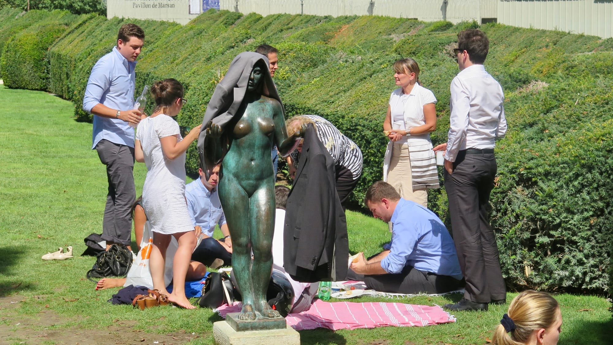 Adding sculptures, especially climbable or interactive ones, is a great way to not only beautify a space but to also make it fun. Large sculptures are perfect focal points for the center or entrance of a square that give a space more finished look. Art is also a way to communicate a town's values or culture, giving visitors a glimpse into what locals care about such as literature, science, history, etc.