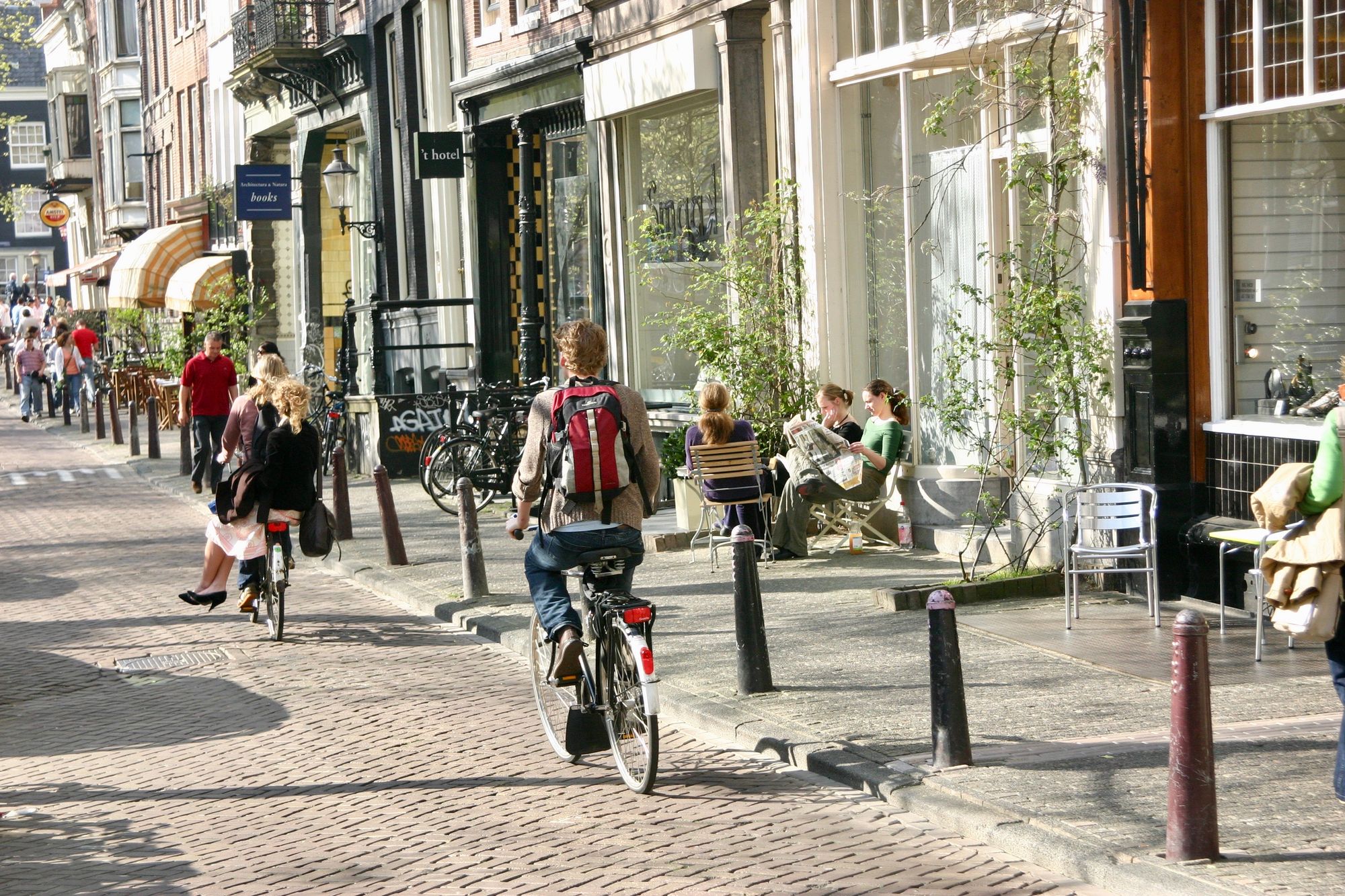 Anywhere both sun and people can be found needs to have shade. If it is too hot or sunny, people will avoid spending time outside and walking. Therefore, providing shade can be a strategy to attract people to certain places. Awnings, umbrellas and shade structures are important features of a pleasant street.