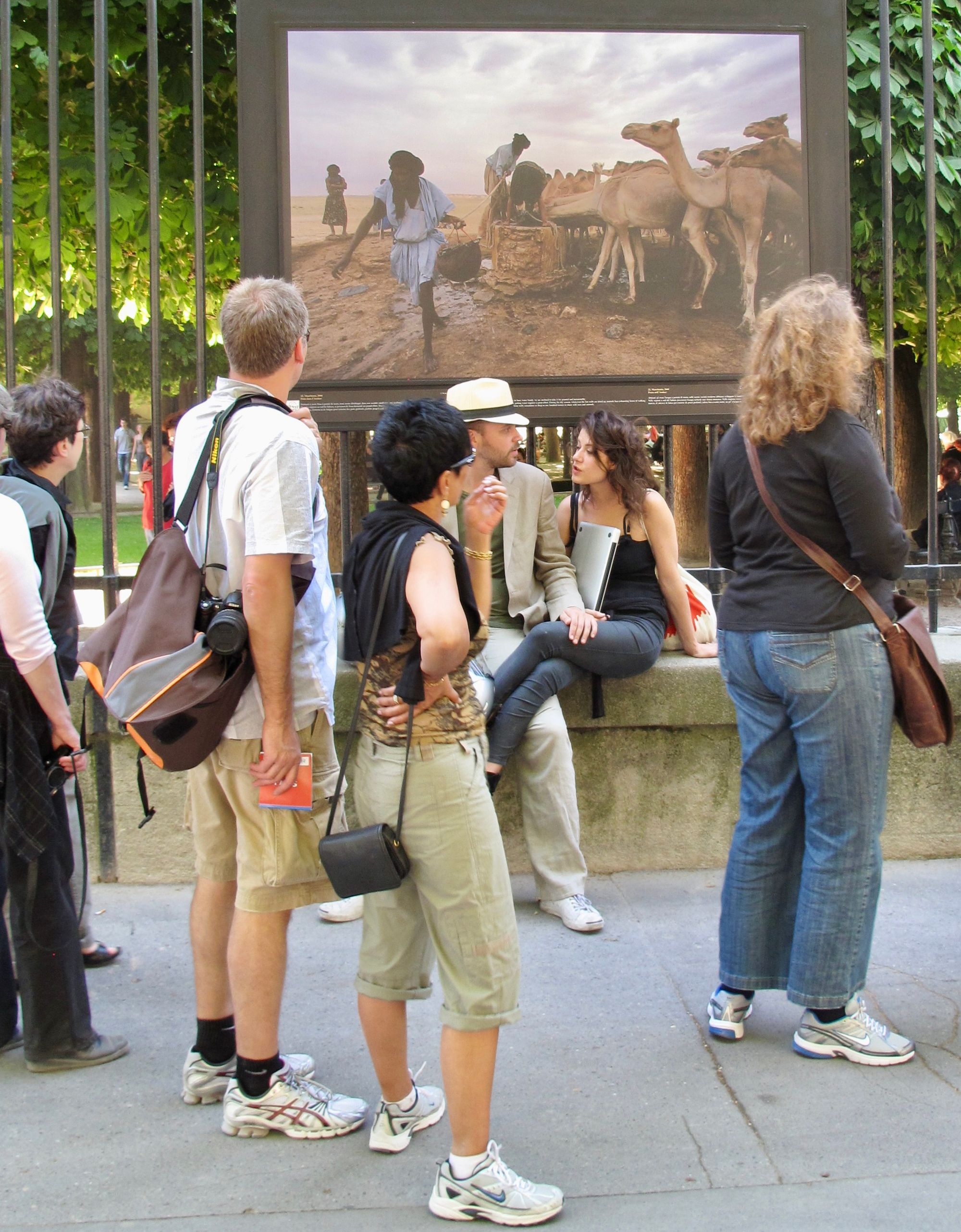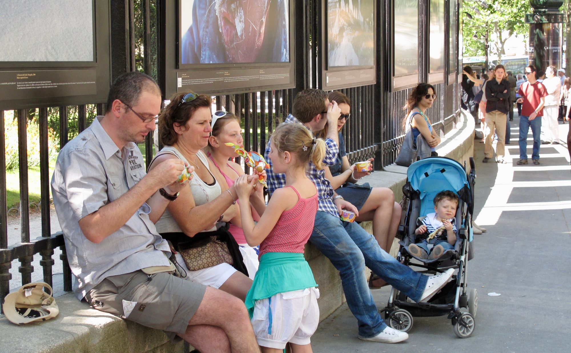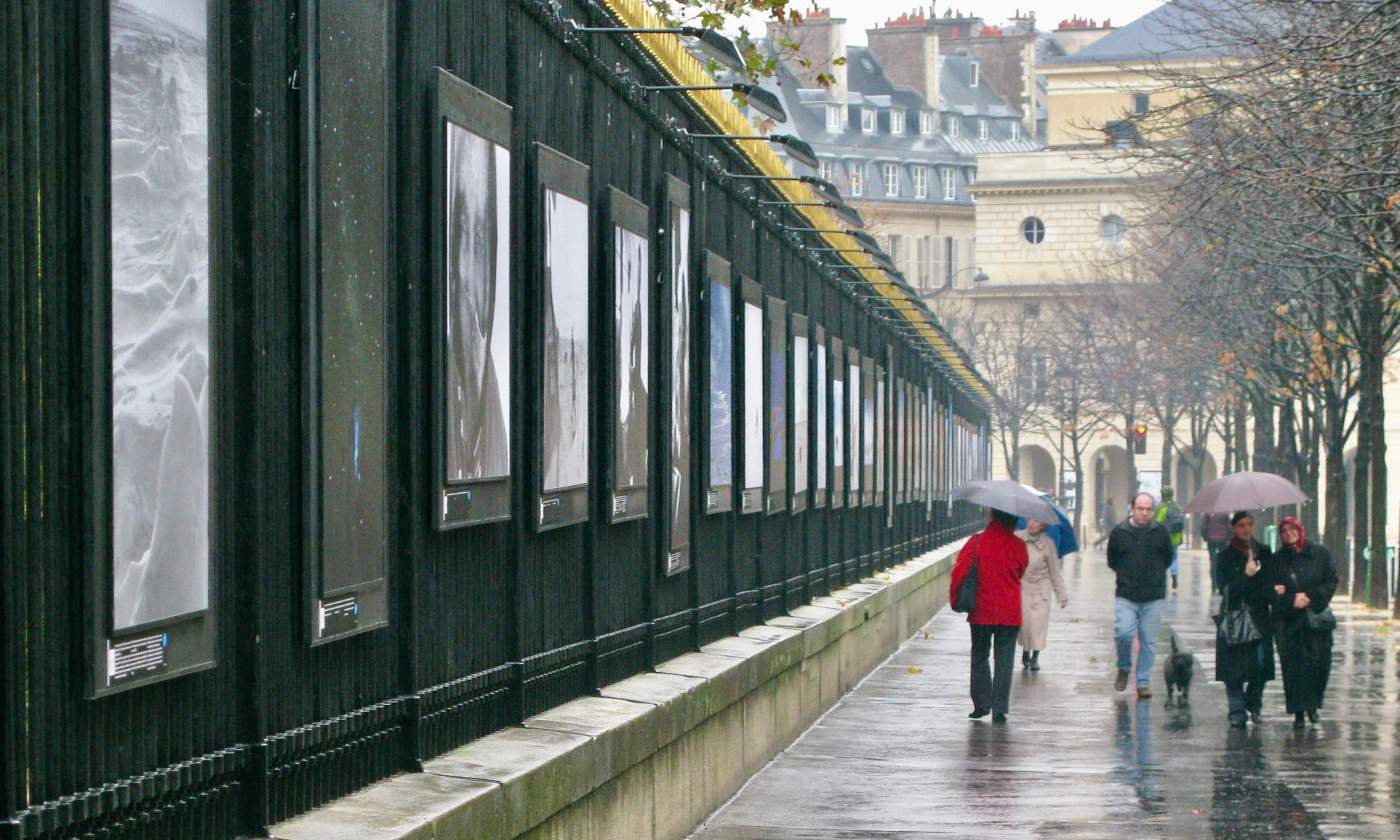 The art exhibits outside Luxembourg Gardens are often double sided with art displays on the fence as well as the other side of the sidewalk, creating a more multi-layered art experience.