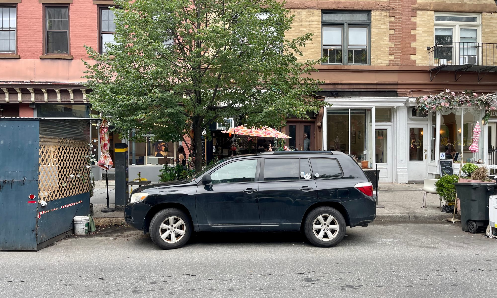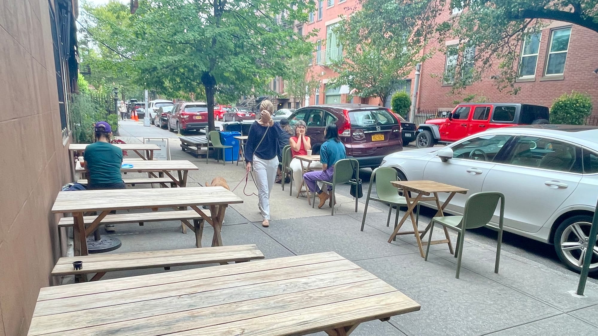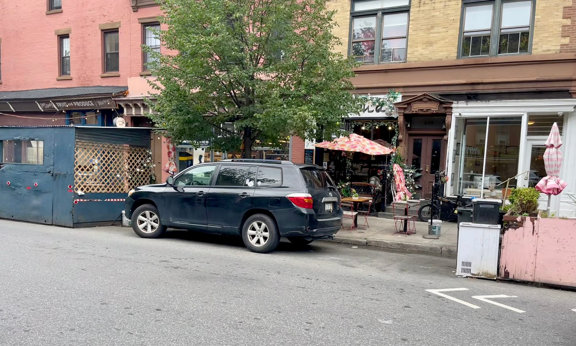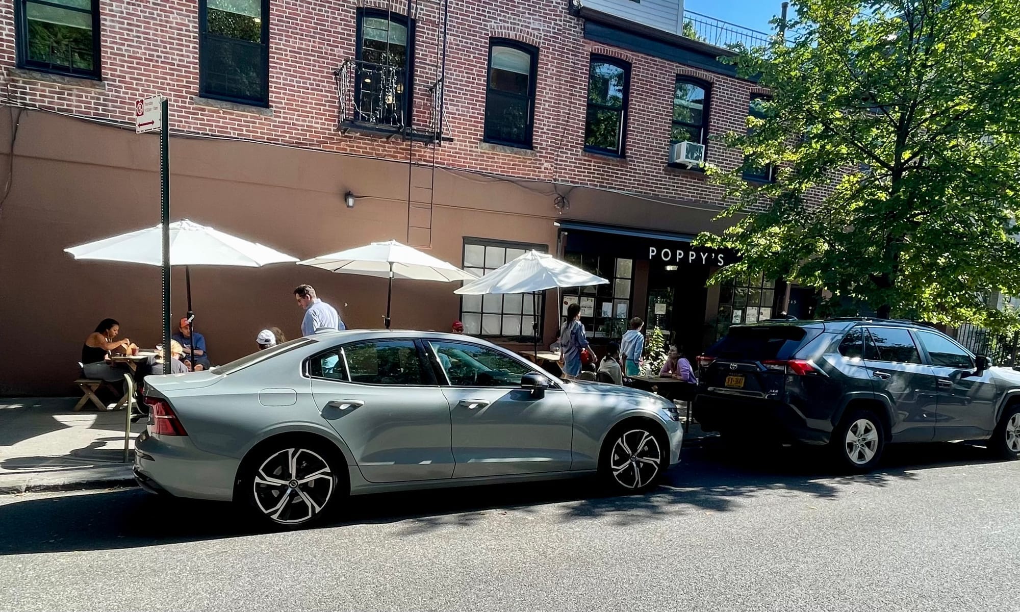 Poppy’s, a Brooklyn-based restaurant expanded its seating area into the street to create a wonderful outdoor eating and socializing environment that everyone enjoyed. Now, that lovely dining shed is a parking spot for ONE CAR...
