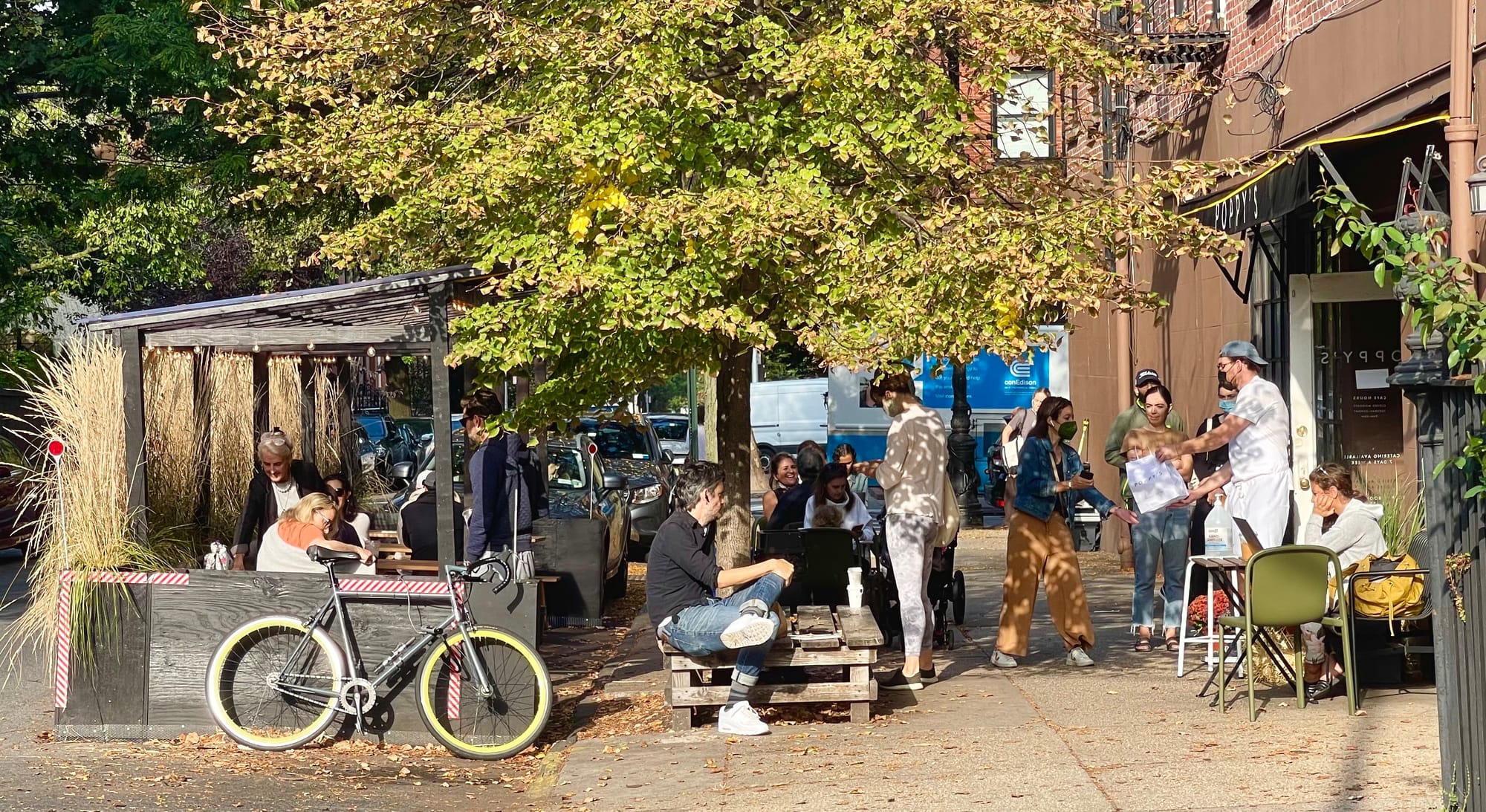 Since restaurants were allowed to pull their offerings outside in the fresh air where it was much safer to be, dining sheds turned into a savior of both commercial and social life in New York during the pandemic. This created a powerful moment of realization about how the shape of our cities – especially public spaces like sidewalks – impacts economic prosperity, health and wellbeing. This transformation gave us a new idea about how outdoor dining and social hubs in neighborhoods can lead to the creation of a new kind of "Main Street."