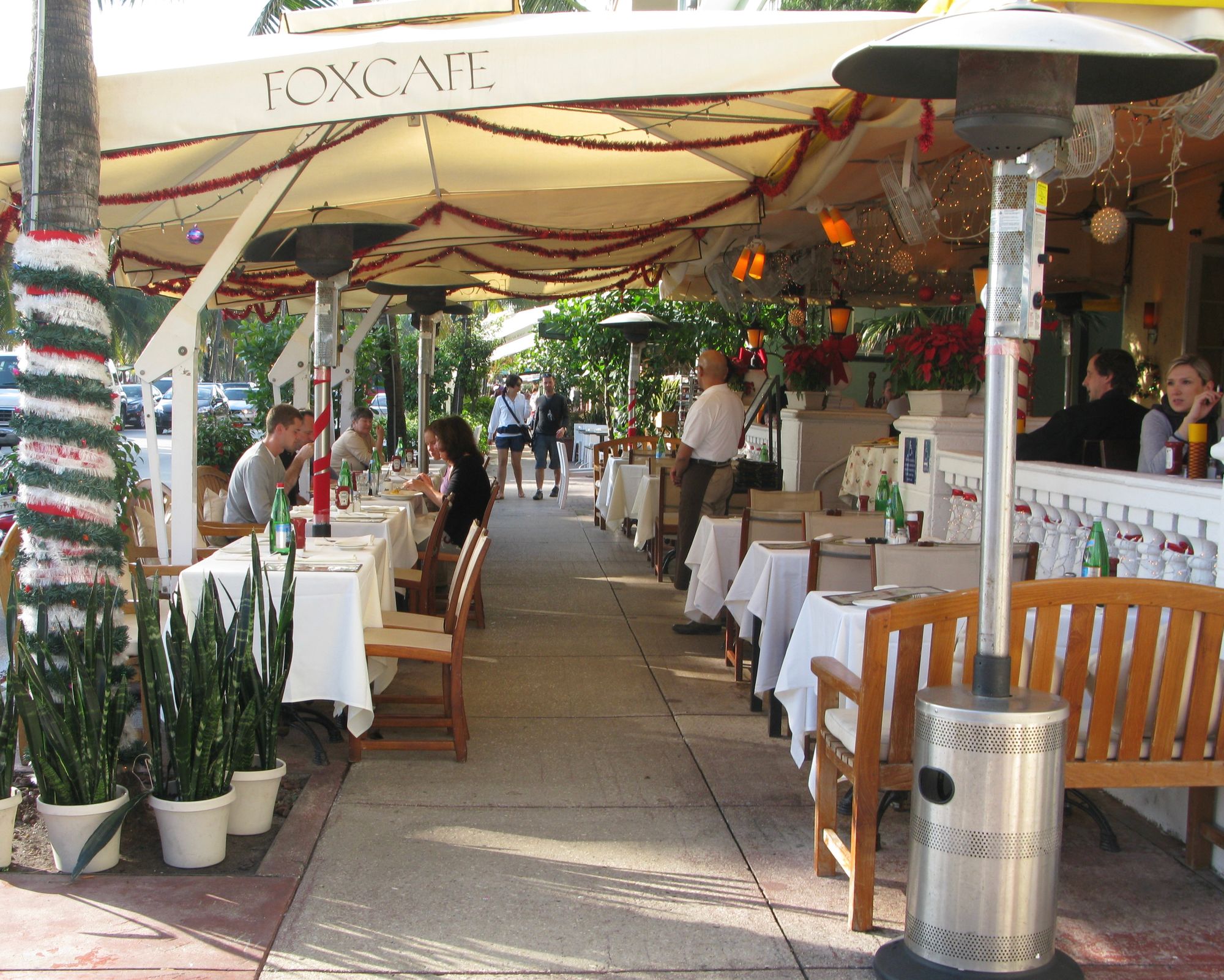 With Art Deco buildings lining Ocean Drive on one side and a park and beach on the other, Ocean Drive in Miami Beach is a place to see and be seen as traffic creeps along the busy thoroughfare. Most of the Art Deco hotels that face Ocean Drive have porches to view the passing throngs of visitors. While these porches have been popular since they were built in the 1930s, it was only after the street was narrowed and the sidewalk widened that Ocean Drive became a vibrant place for pedestrians to promenade.