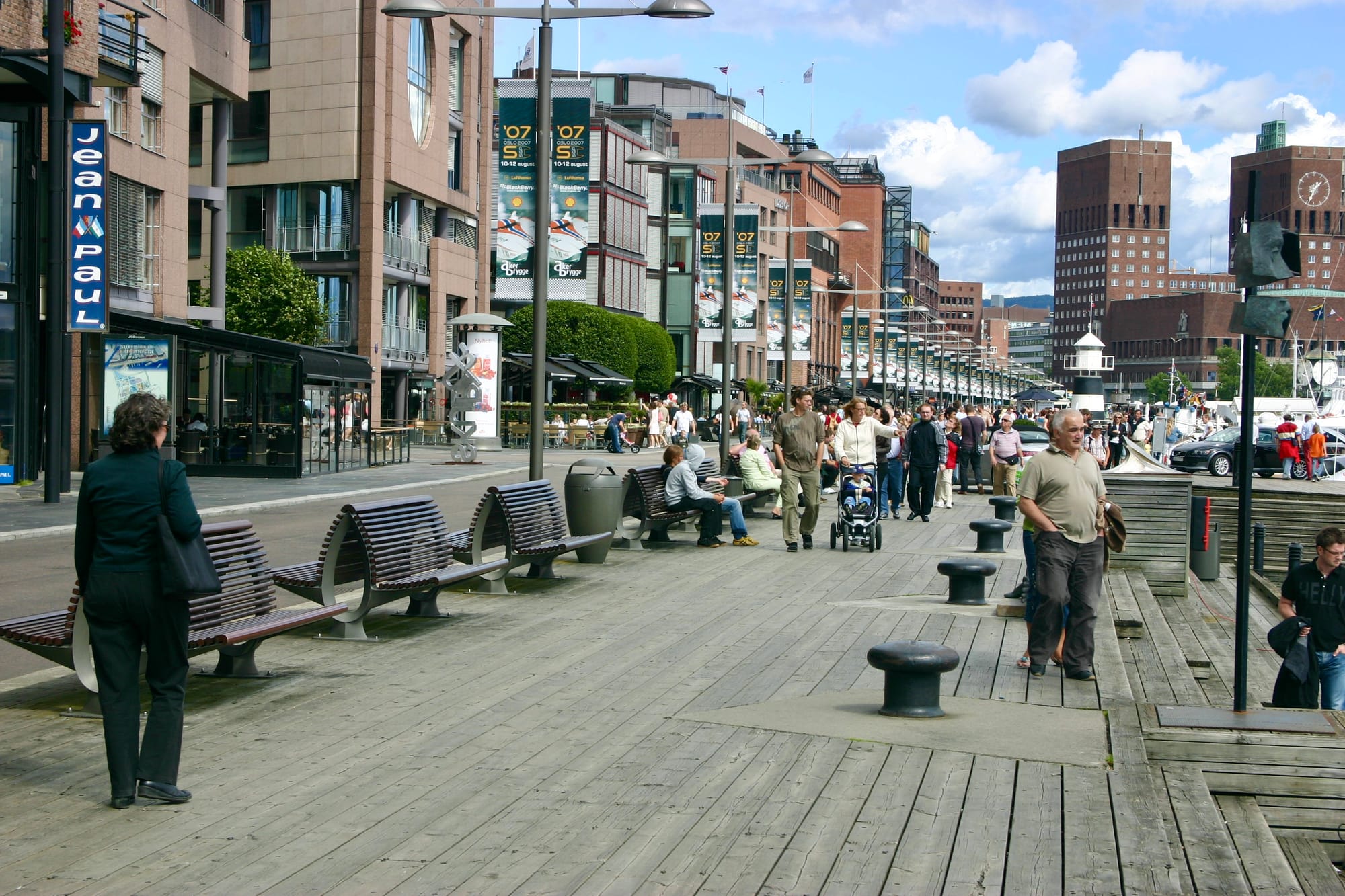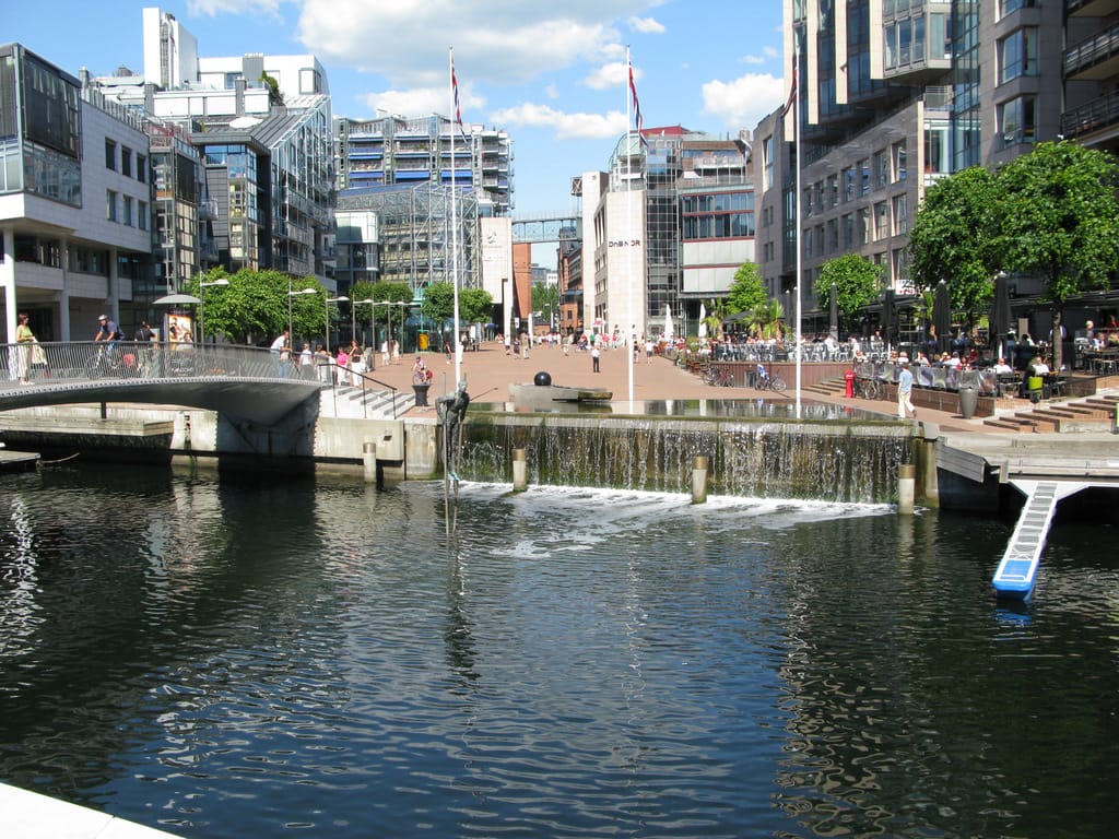 A former shipyard, Aker Brygge, has been transformed into a multi-use public destination, a popular place to live, and a meeting place for both Oslo residents and visitors to the city. The waterfront has everything – from shops and restaurants to marinas and an art museum – all connected with a vibrant pedestrian promenade.