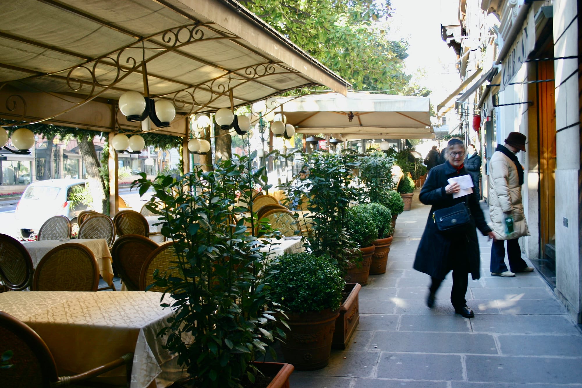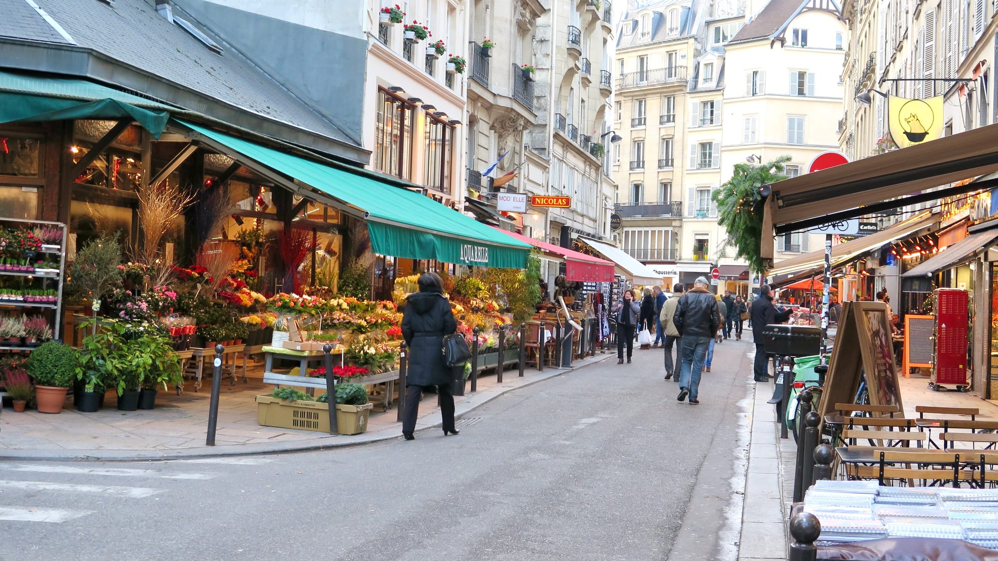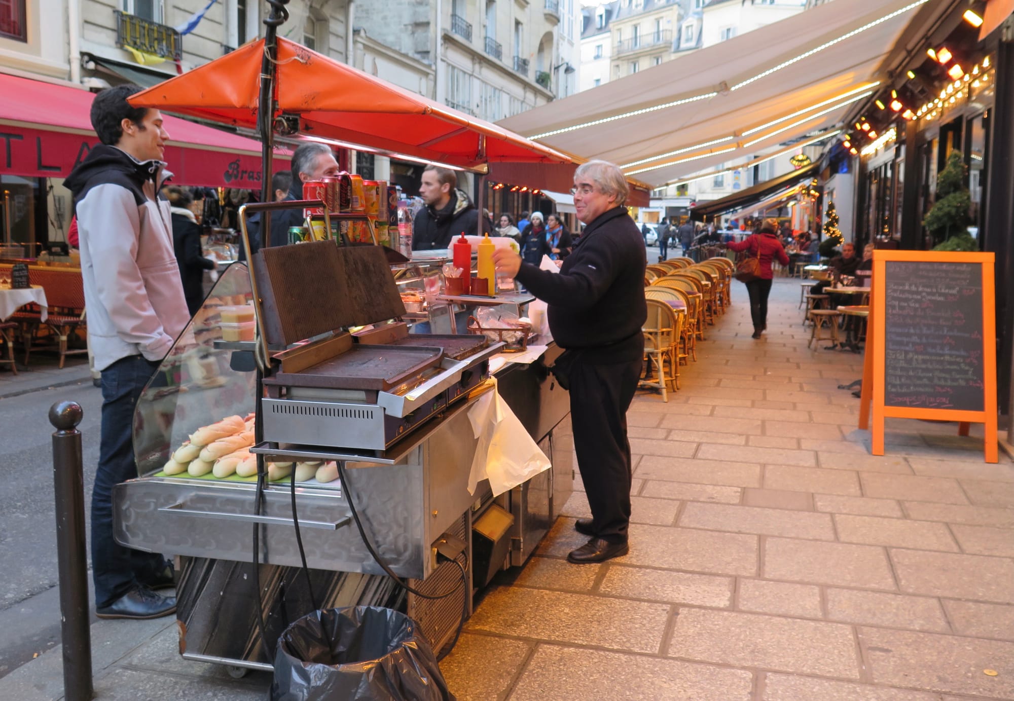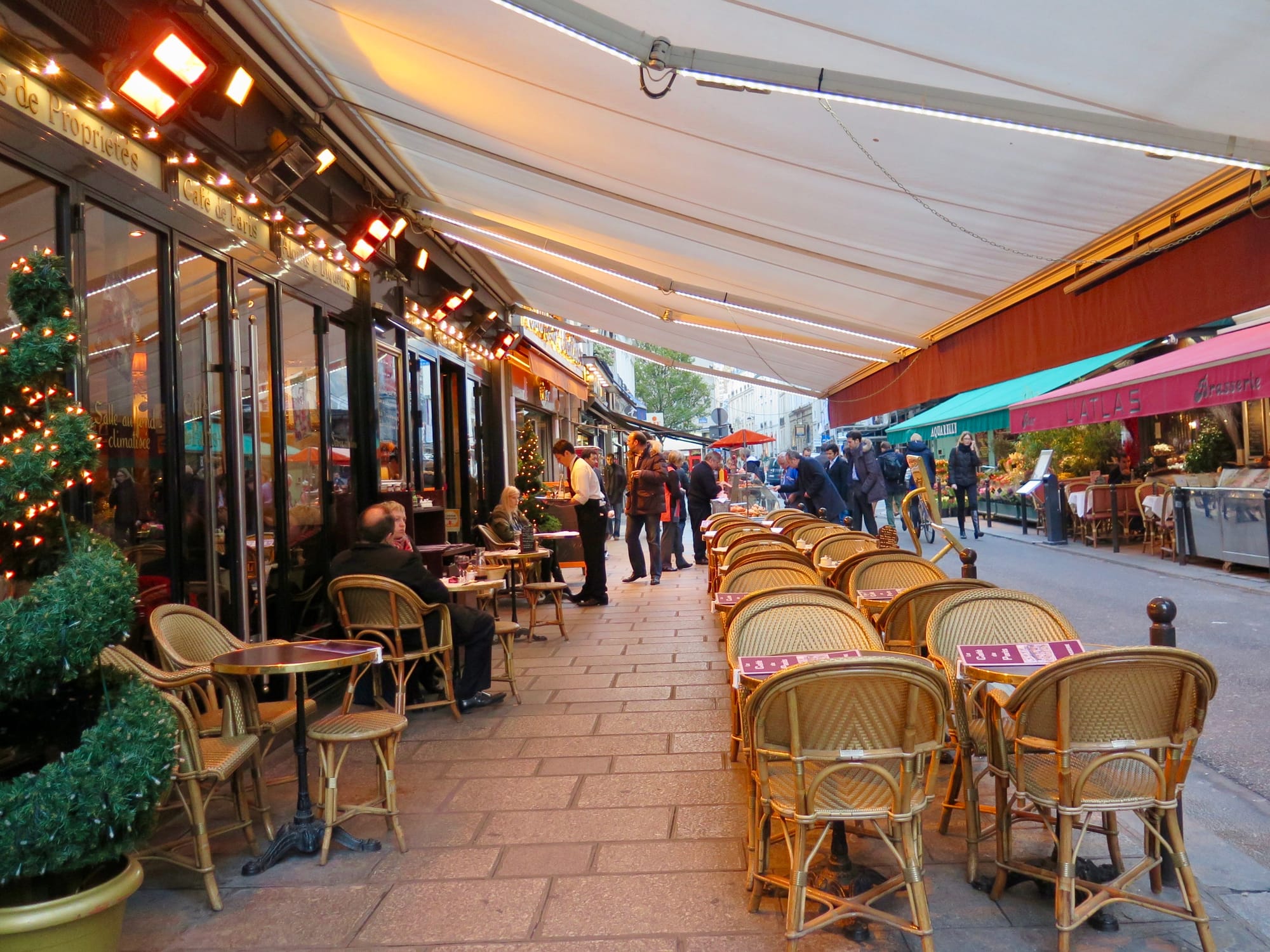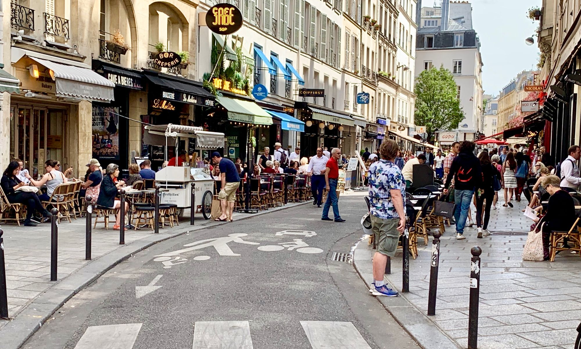 In Paris, this double-loaded sidewalk adds another layer to an already double-loaded street.