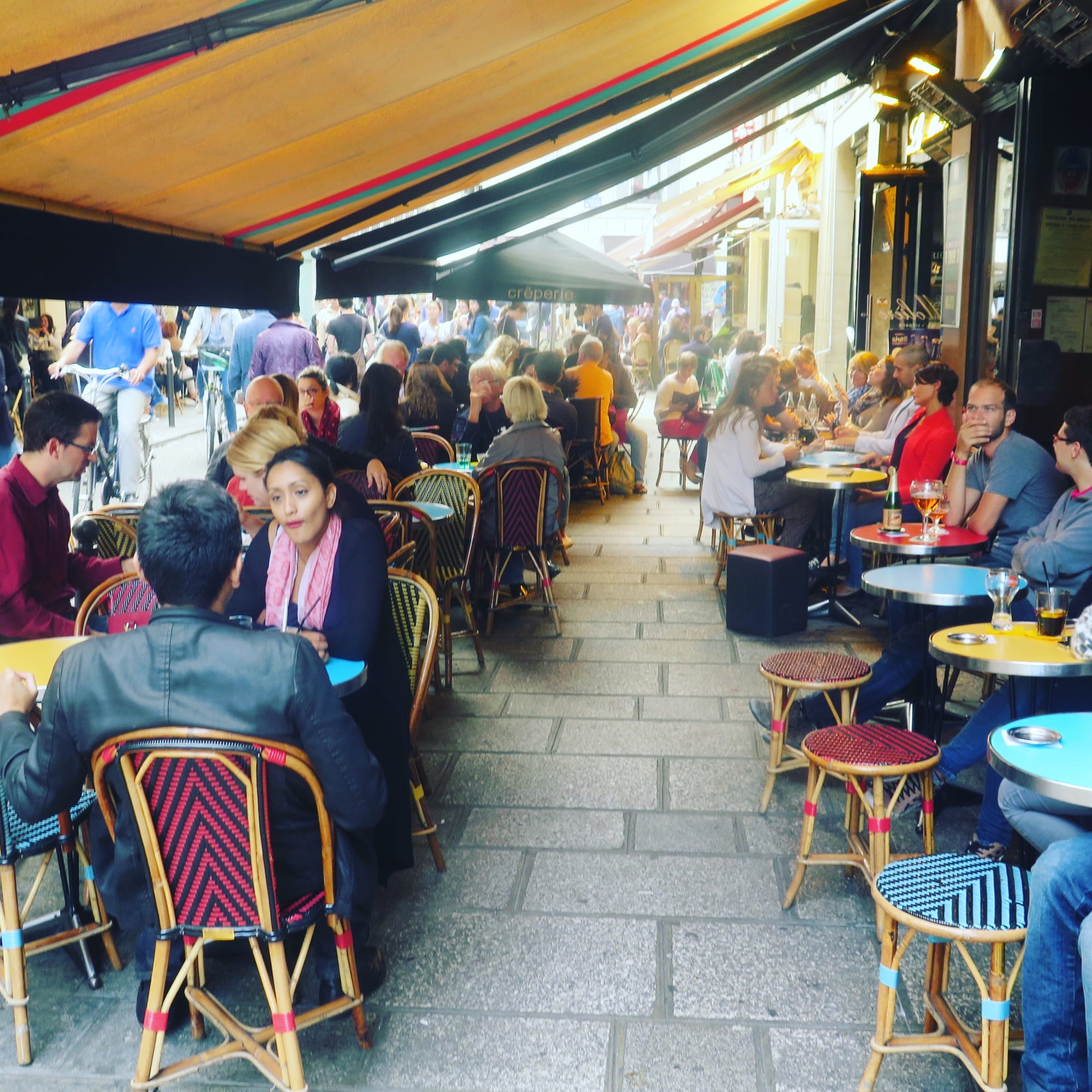 Paris is a city that feels like it's designed for social life. Everywhere you look, there are cafés and public squares and people chatting outside. One of the main reasons it's such a great city in which to connect and gather is because its sidewalks are frequently double-loaded, even the narrowest ones. Paris understands how valuable sidewalk space is and makes the most of it.