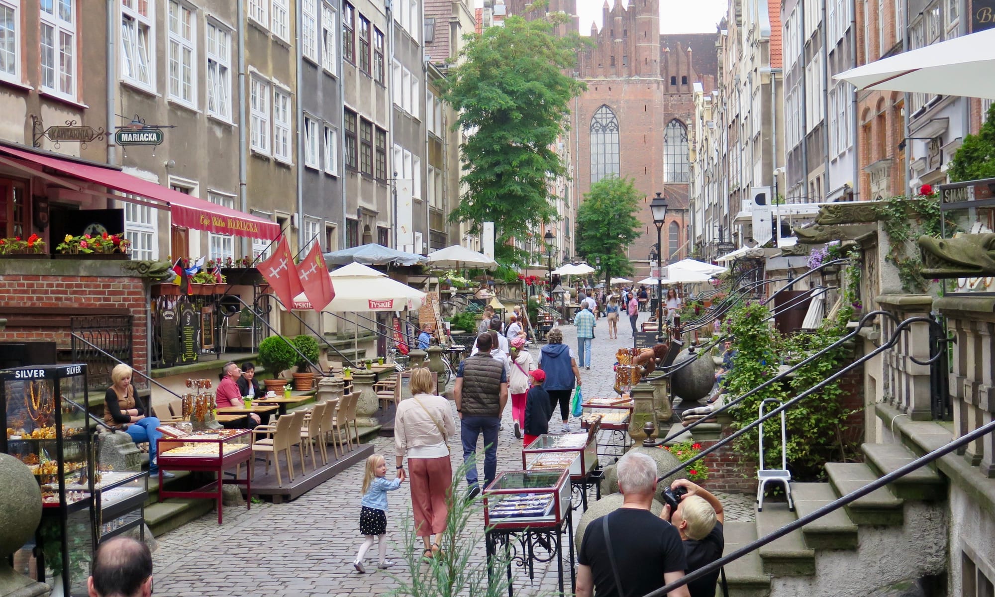 Amber Street in Gdansk was formerly a street where the wealthy lived. Each building had multiple ways to enter, with the upper level being for families and the lower level for servants. The sidewalk/street there was formerly for carriages. Today, it is a wonderful double-loaded street with layers of activations from every direction.