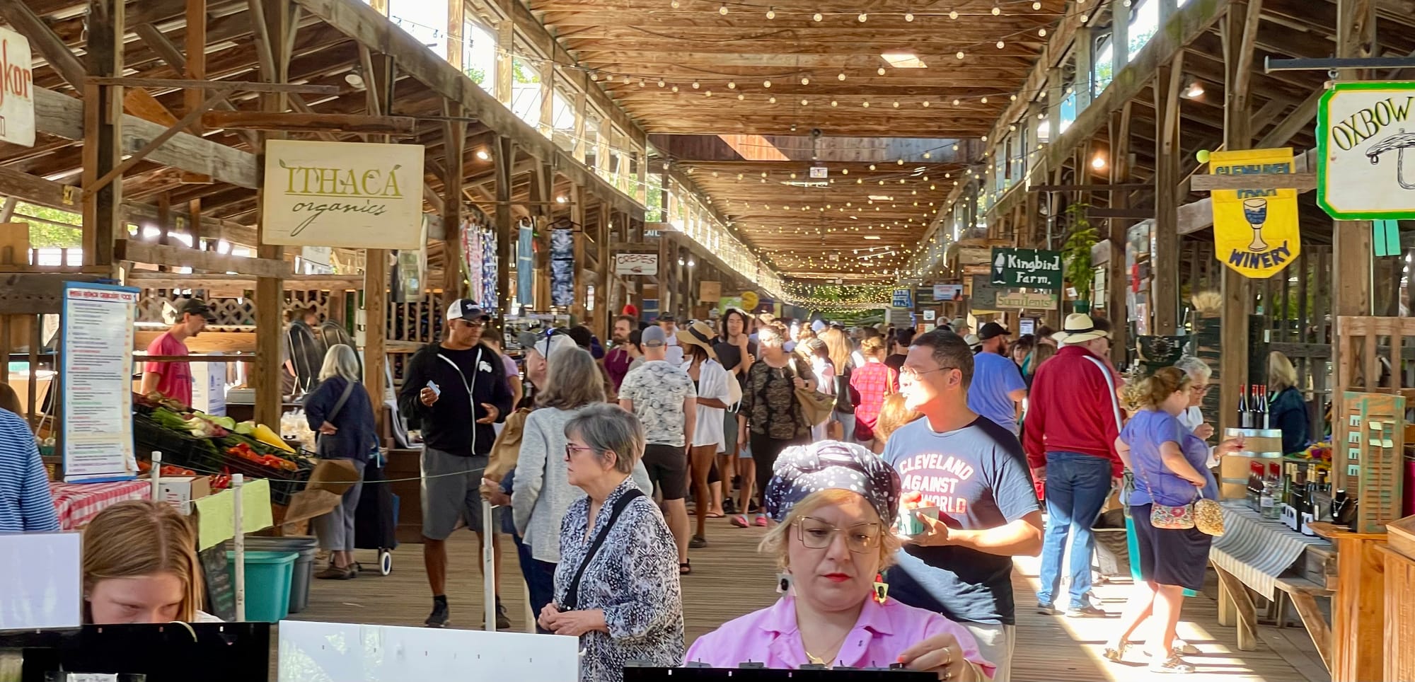 In places like Ithaca Farmers Market, people attract people who attract even more people, until everyone feels like they have to be there to be at the heart of activity. Connecting with others becomes a primary reason to come. The more there is to see and do, the more people will come to see and do it – a simple fact of life.