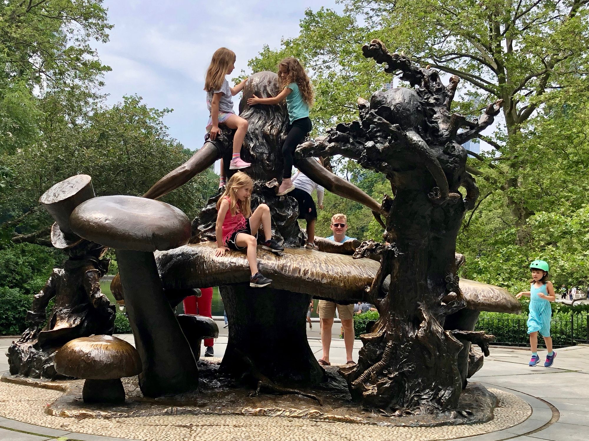 José de Creeft created the Alice in Wonderland statue in 1959, drawing on illustrations from the original book. With intentionally climbable mushrooms, and an array of familiar characters, the statue's design has invited visitors to climb up to get a closer look at Alice, the Mad Hatter, and the Cheshire Cat for decades.