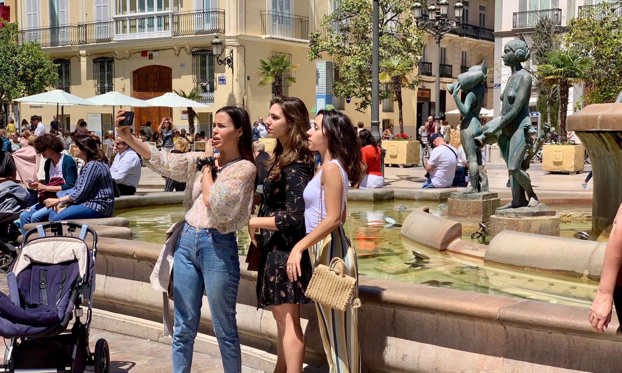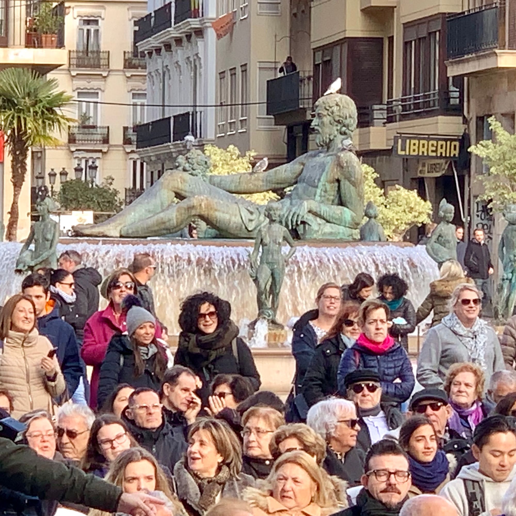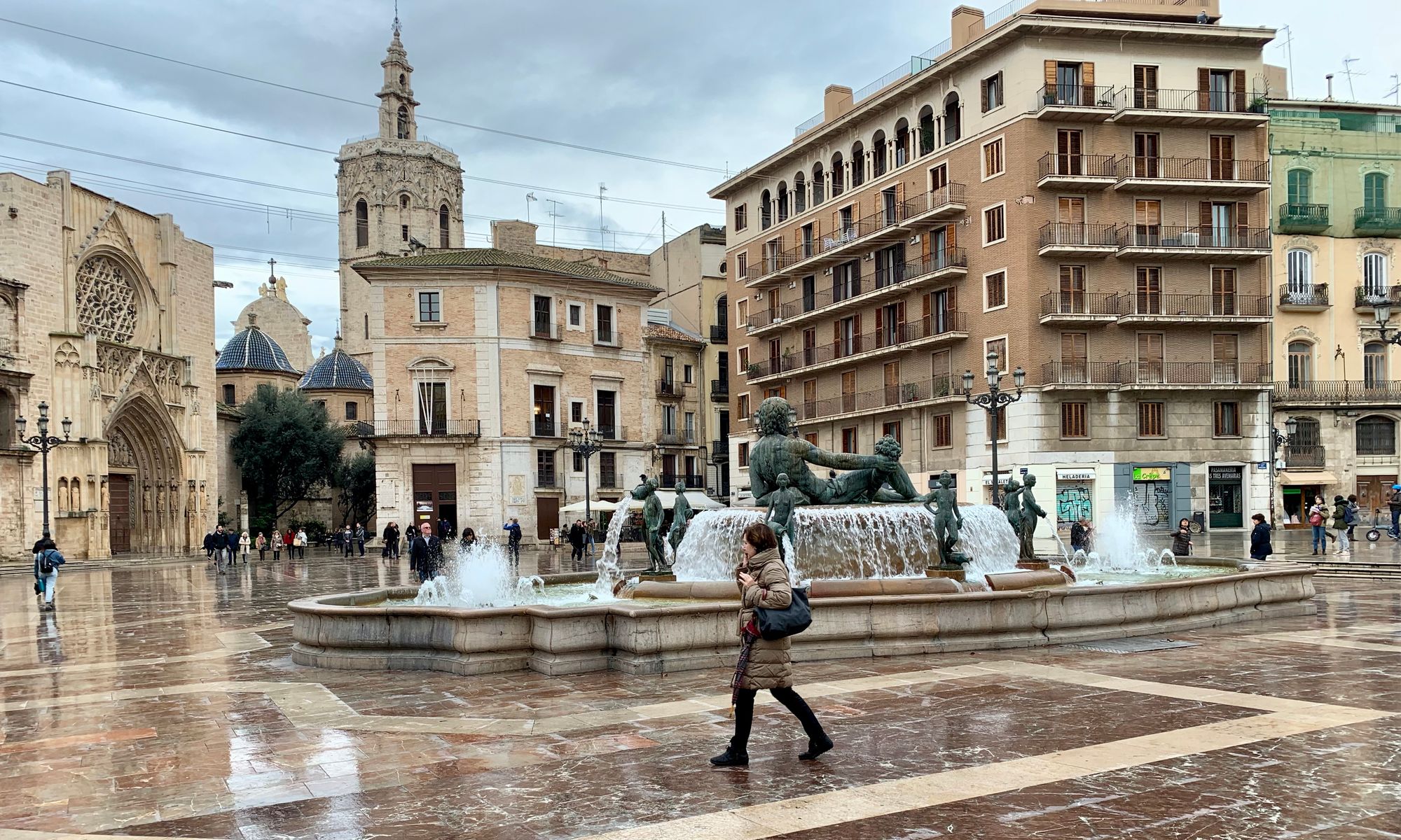 In Valencia's Plaza de la Virgen, the Valencia Cathedral overlooks a buzzing scene. Much of this activity centers around the Turia Fountain, the edges of which are a perfect place to perch.