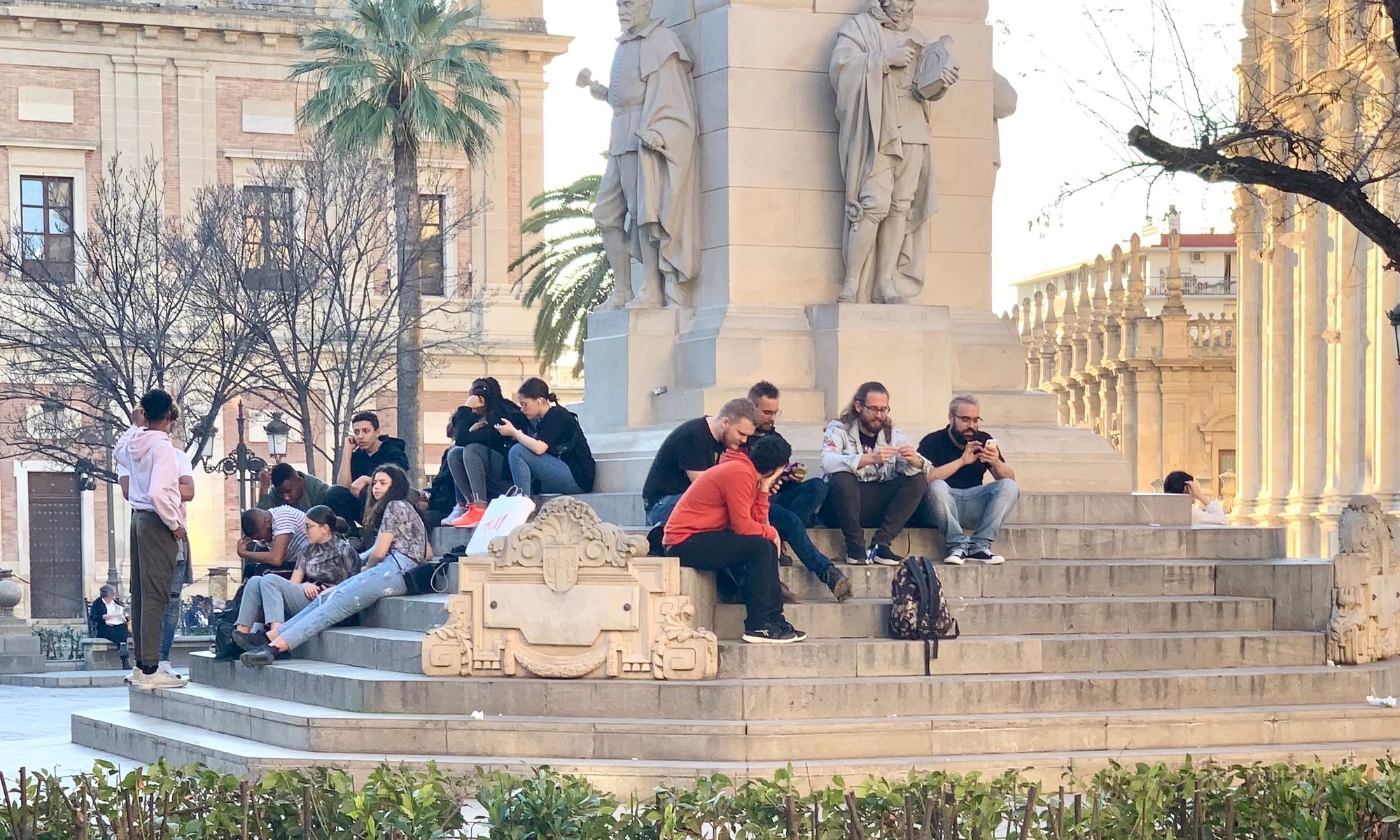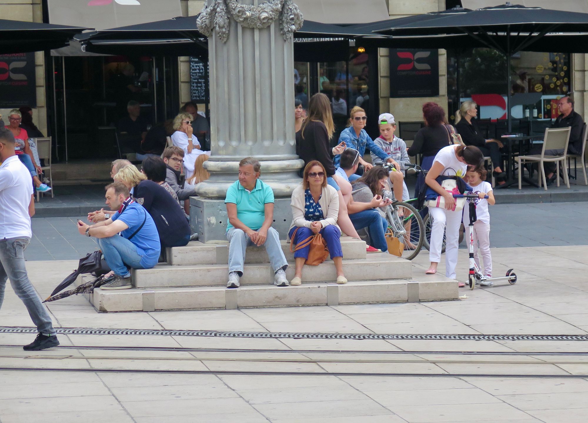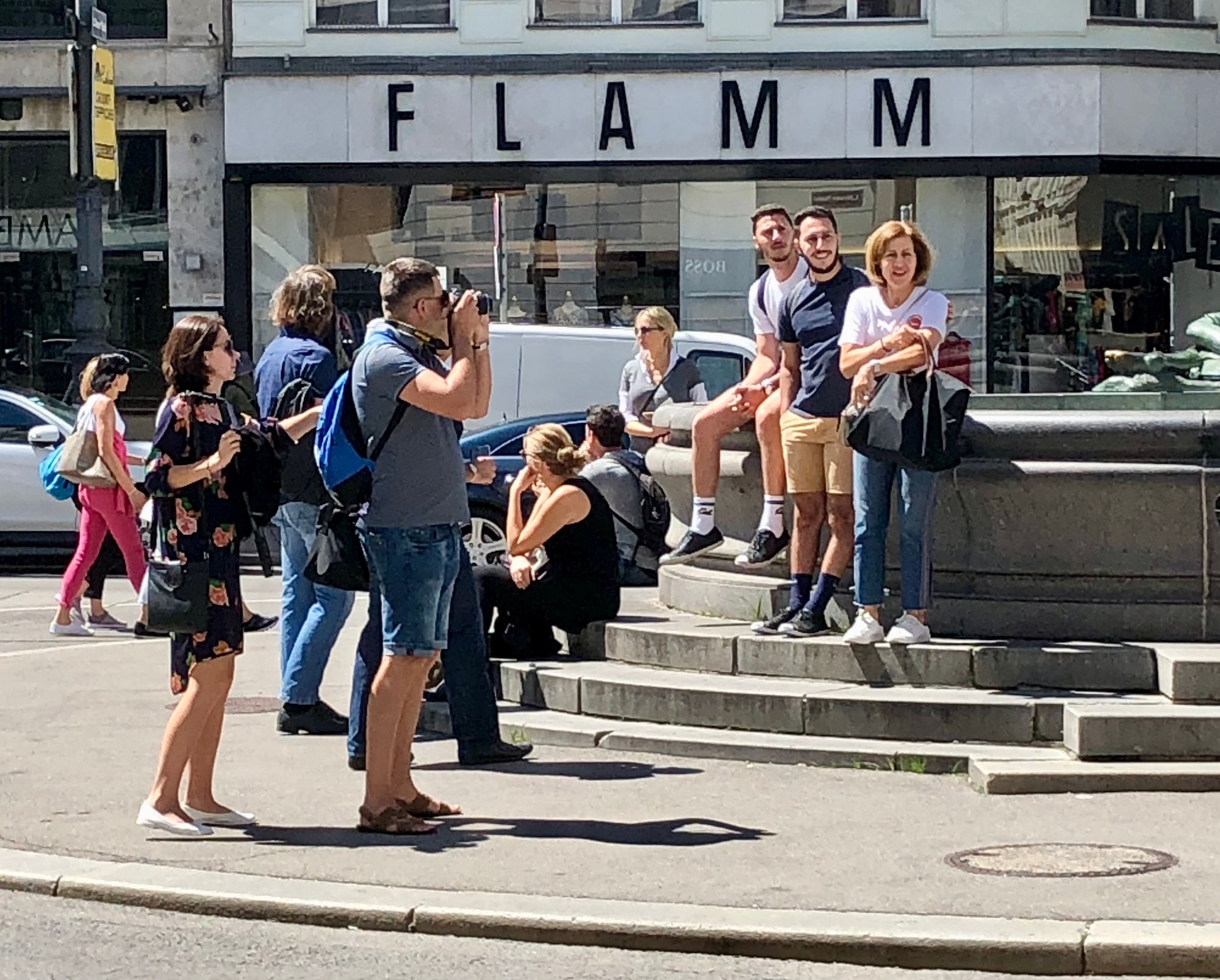 What a focal point is varies greatly, from square to square. Sometimes it is as simple as a good spot to sit, a fountain, or a statue on which kids can play and climb. The ones we are interested in are the ones that are swarming with people: Places where people hang out, meet up, or sit down and people-watch.