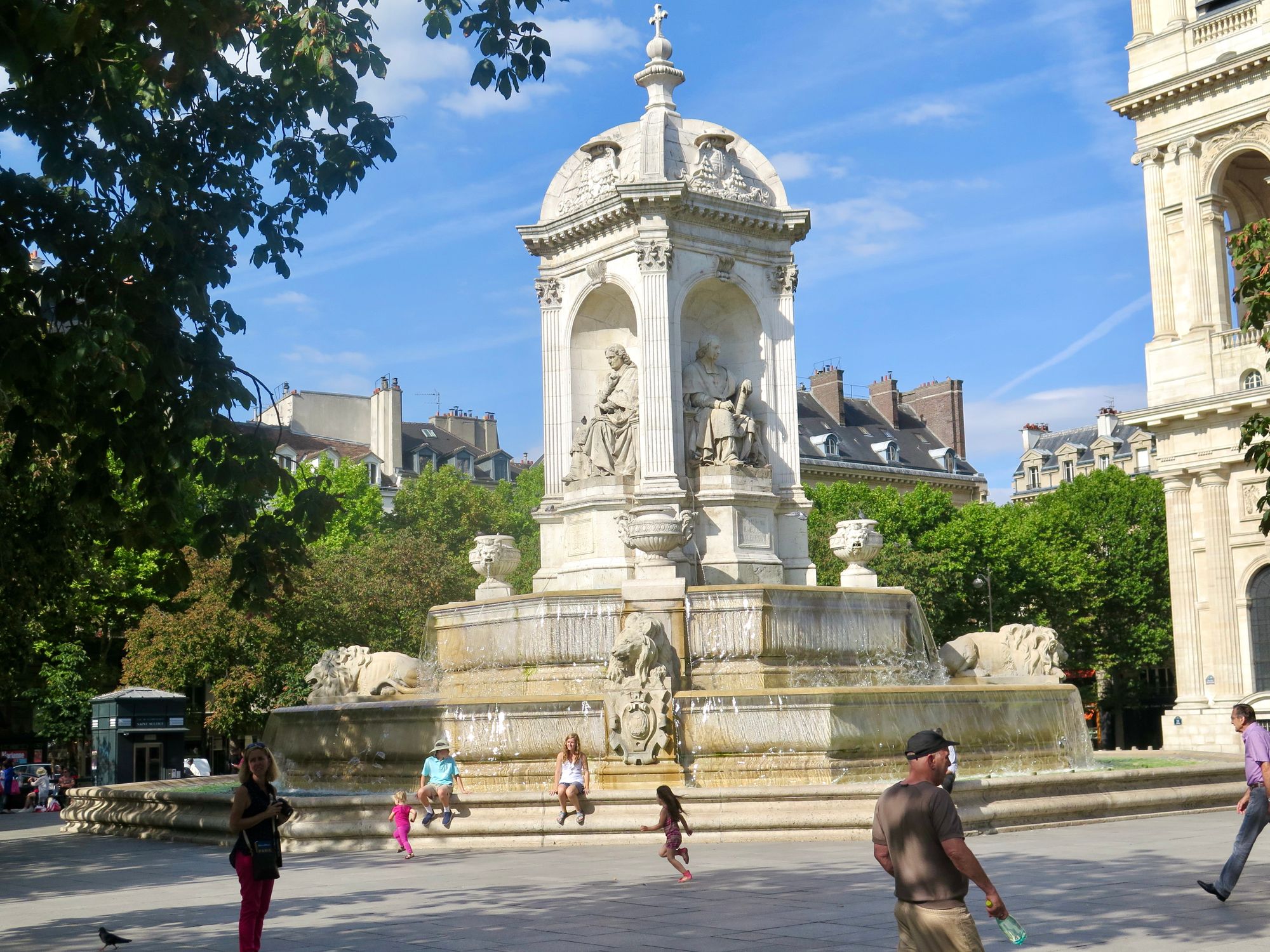 Place Saint-Sulpice in Paris is, of course, home to the Church of Saint-Sulpice, but like the examples mentioned above, draws people in with its fountain and shaded spaces.