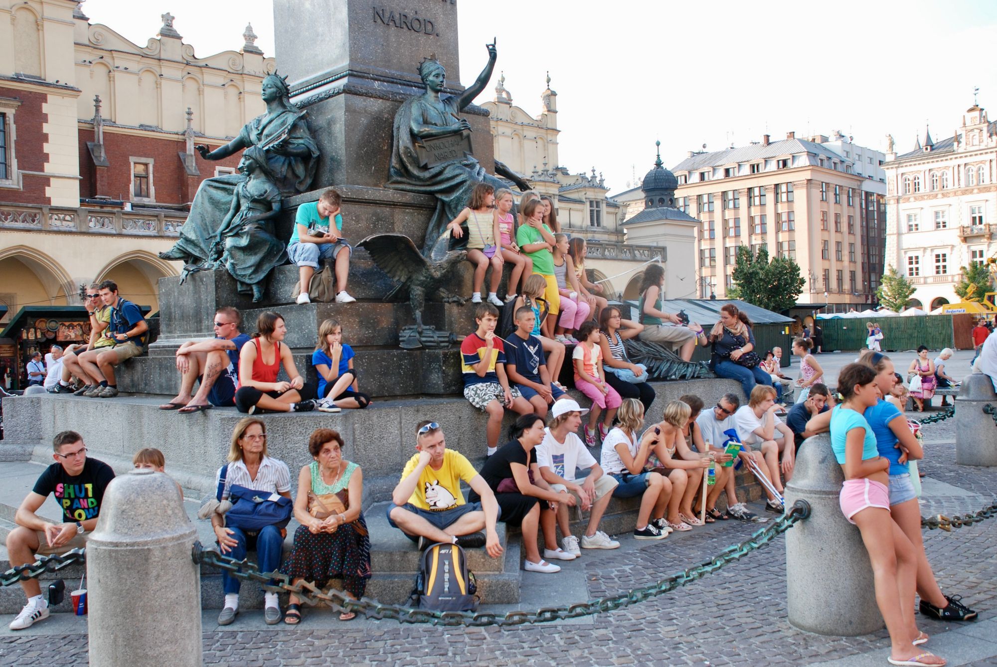 Main Square, Krakow; seating in Paris; Grand Central Station, New York City; and Michael Jackson Memorial, Munich.