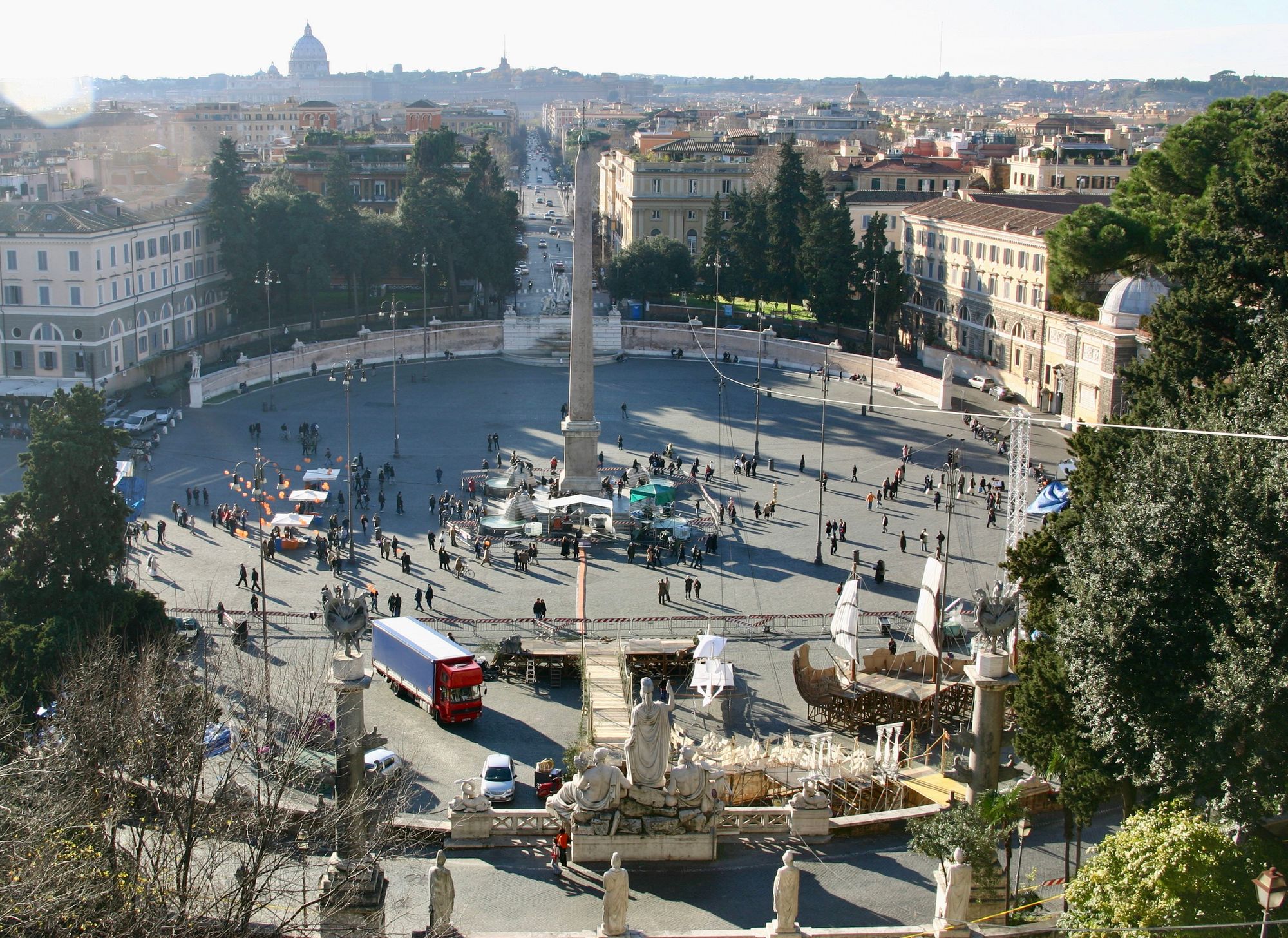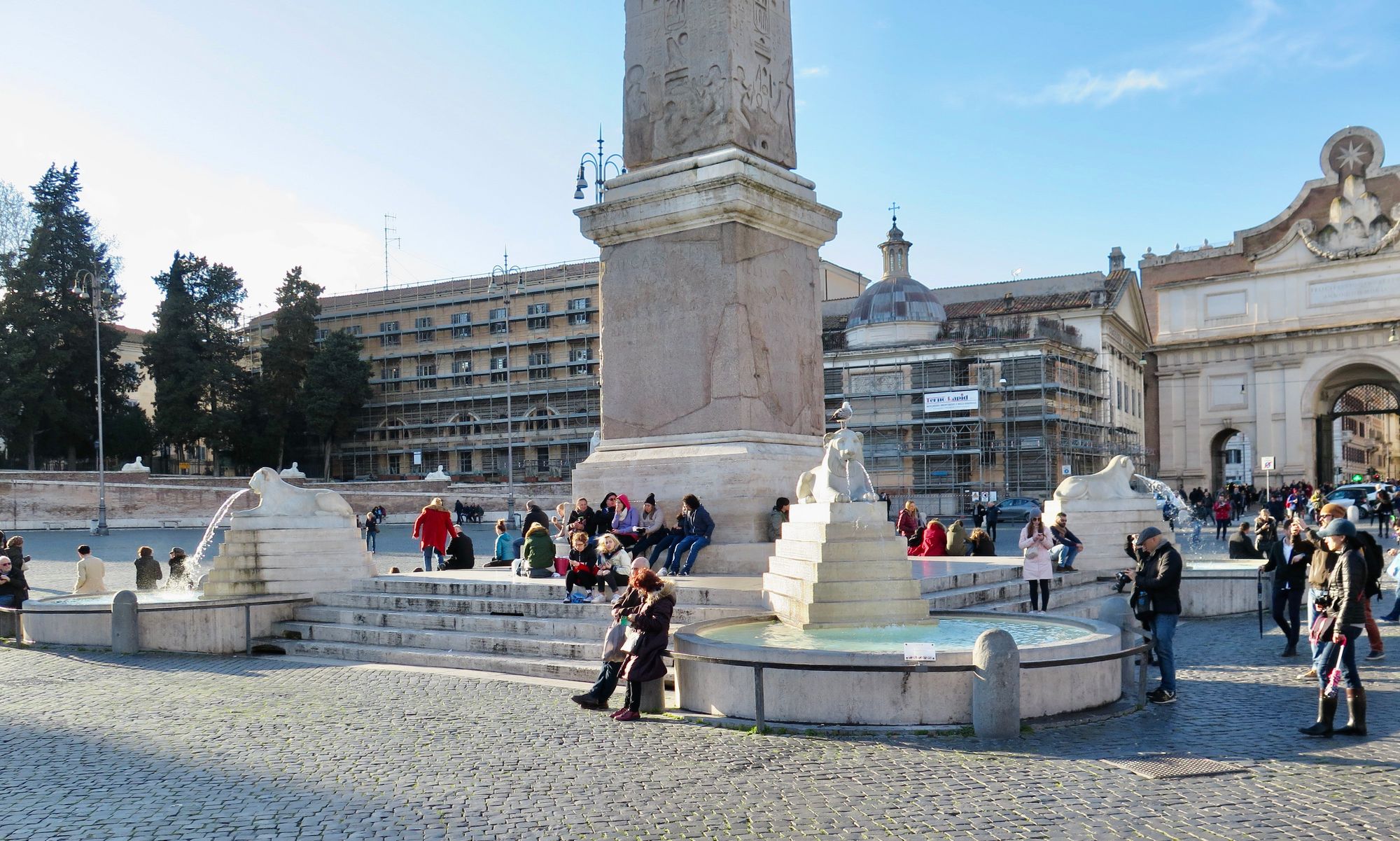An ancient obelisk in Piazza Popolo was built upon in the nineteenth century, with the addition of four fountains and marble lion sculptures.