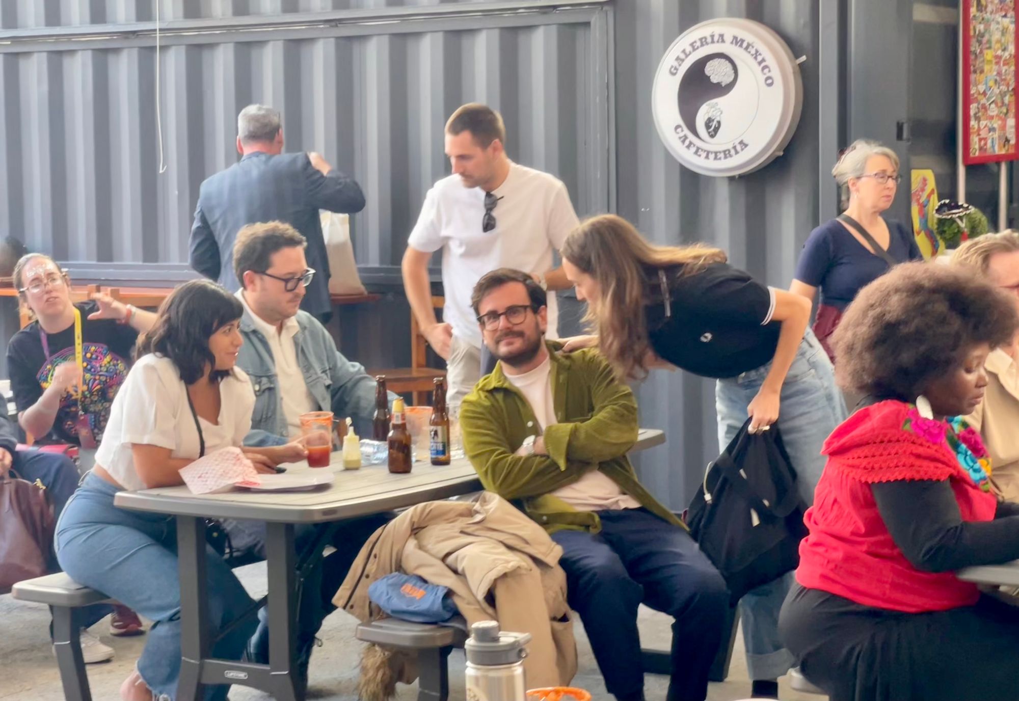 This venue was spectacular because, until very recently, there was nothing here. If you search it on Google Maps, the location is still listed as a parking lot! As a true example of successful placemaking, it has been fully transformed by just a few simple, community-led changes. Shipping container pop-up bars and restaurants, benches and tables, and colorful murals interspersed with lights have turned this parking lot into a beloved gathering place and event venue.