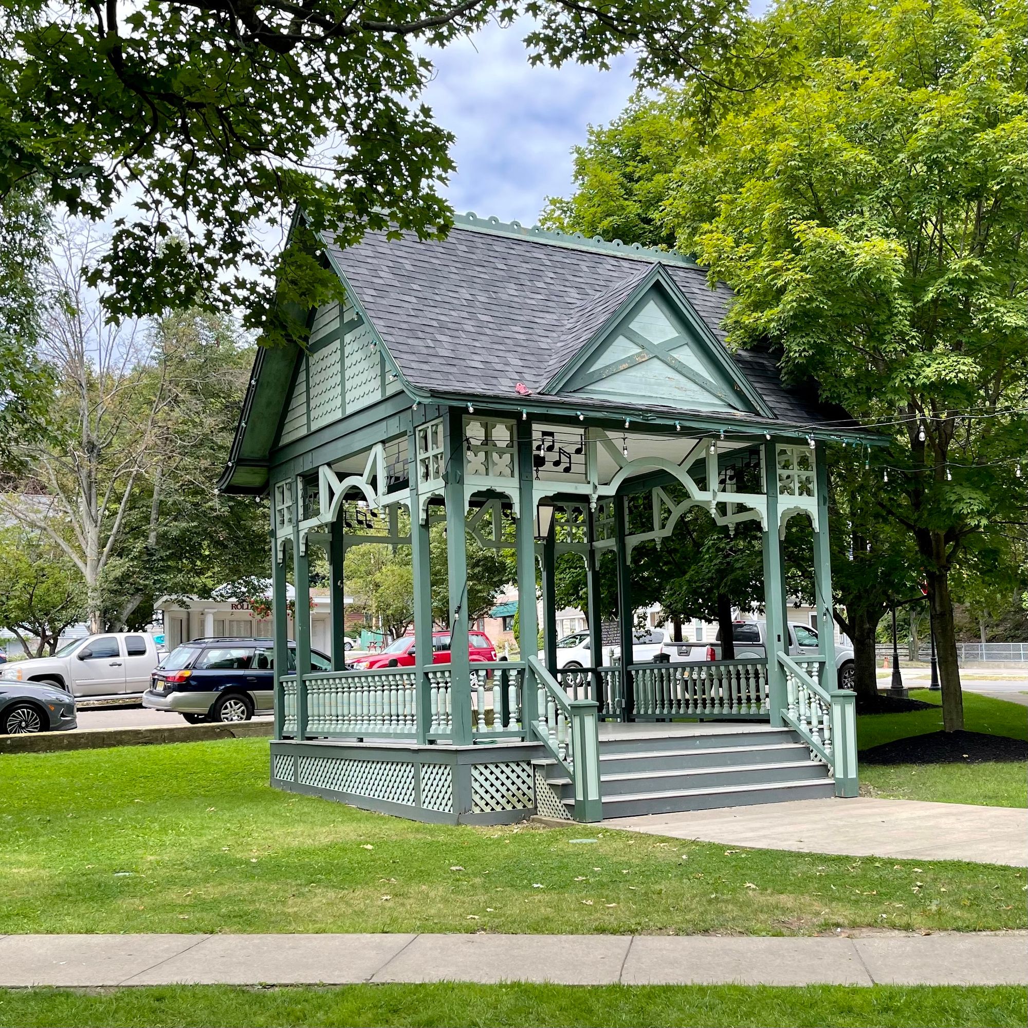 Some of the assets that one immediately notices in town are right in the center. Public buildings and community institutions adjoin the most important public spaces, including the local church, a bed and breakfast, and a gazebo (with seating!) in the town square, along with a police station along the waterfront.