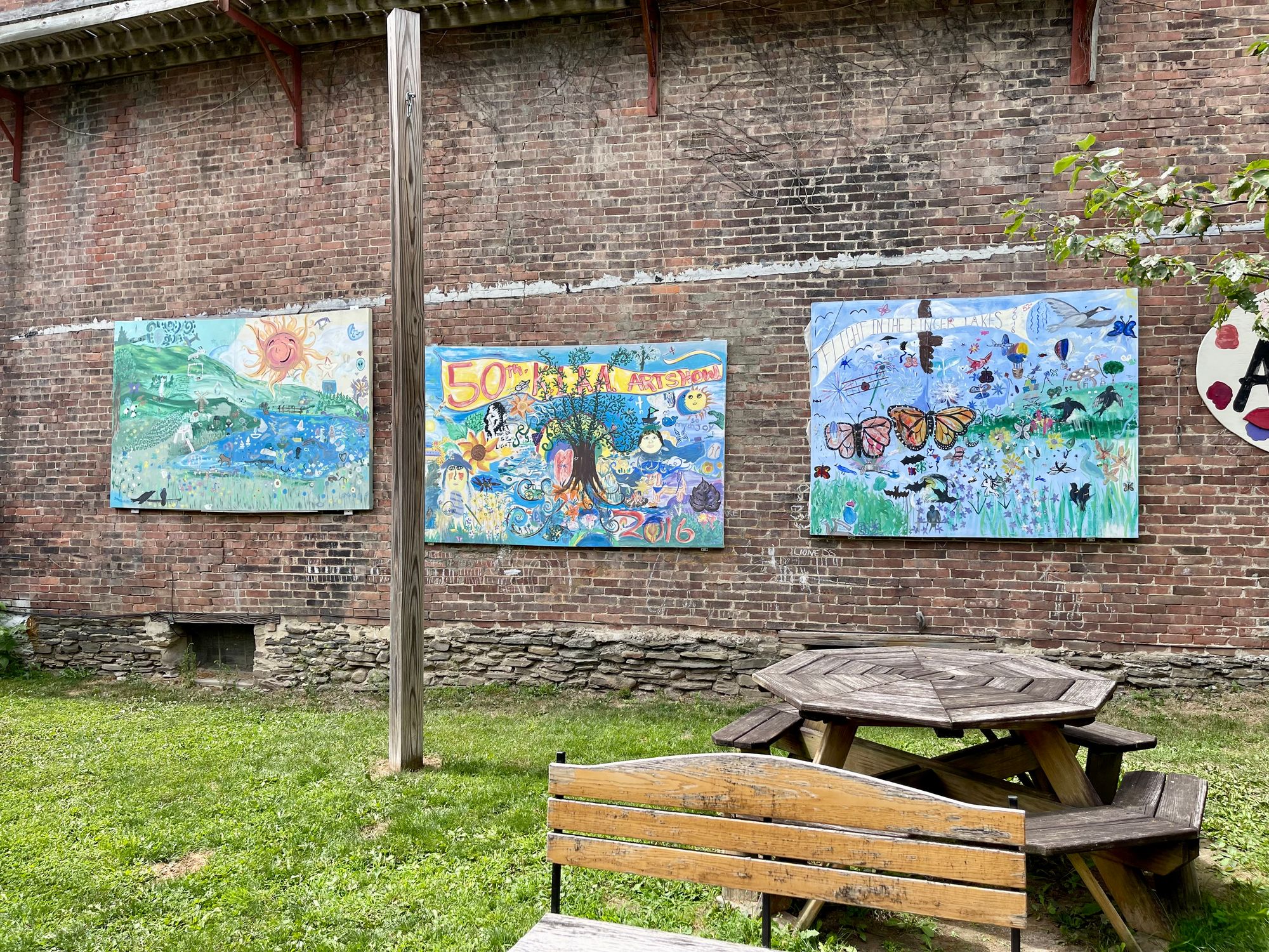The art park is part of a wider engagement with public art in Hammondsport. This year marked the Annual Palettes 2022 Art Tour Exhibition, which was a summer-long art tour that is in its 16th year. Local businesses sponsor an artist to paint a "palette" to be placed on their property. This year there were 29 "palettes" in and around the downtown. People are invited to tour around town to find them, and then to fill out a form to get a prize. At the end of the summer, each "palette" is sold off and proceeds go to local charities.
