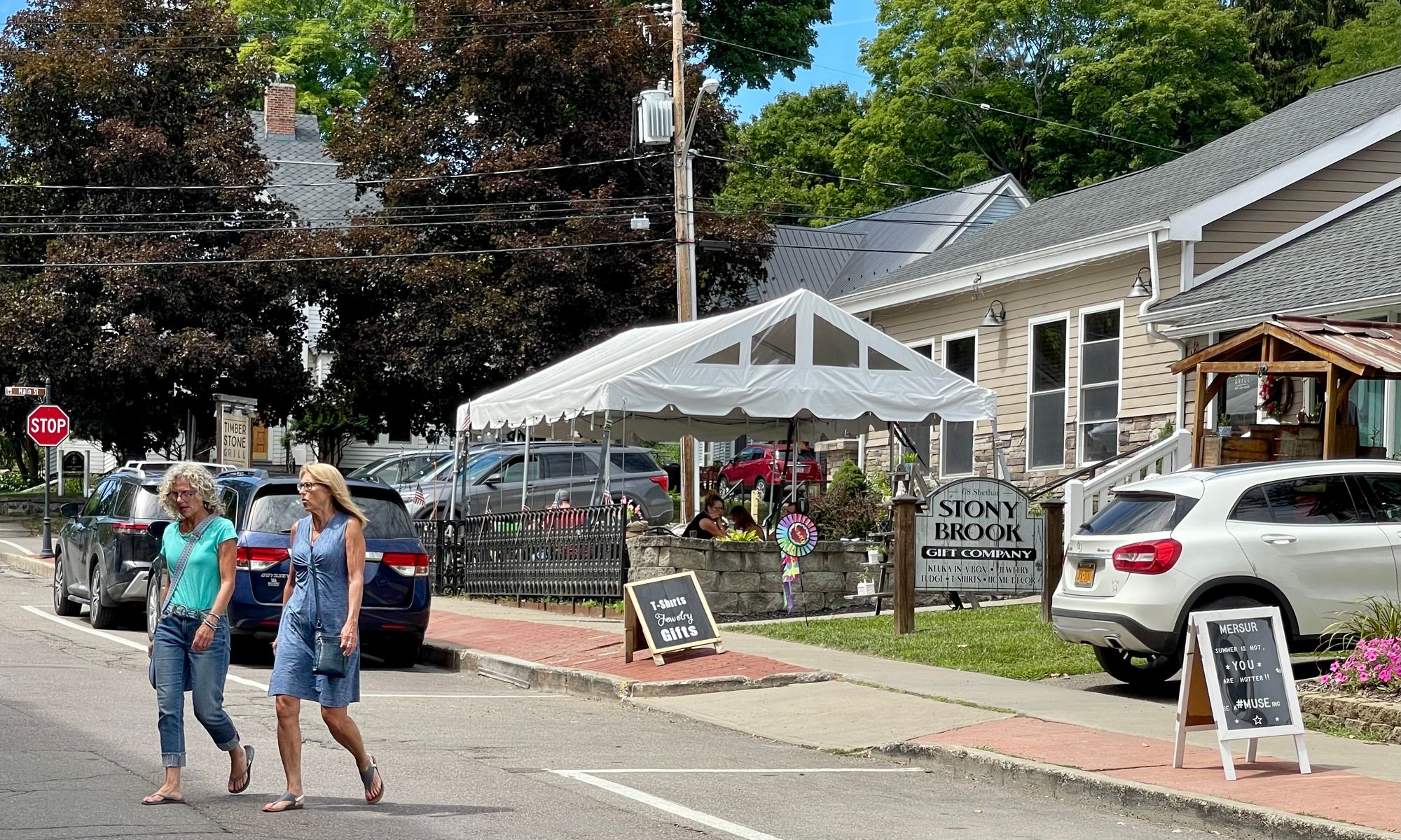 The center of Hammondsport is small and well-proportioned enough to draw people in for various experiences. It really serves as a square, which is often better than the more widespread "town green" approach. The latter, though often bigger, is usually much more passive. In Hammondsport, the town square has ample seating, shade, and often hosts events, markets and performances. It is the heart of town.