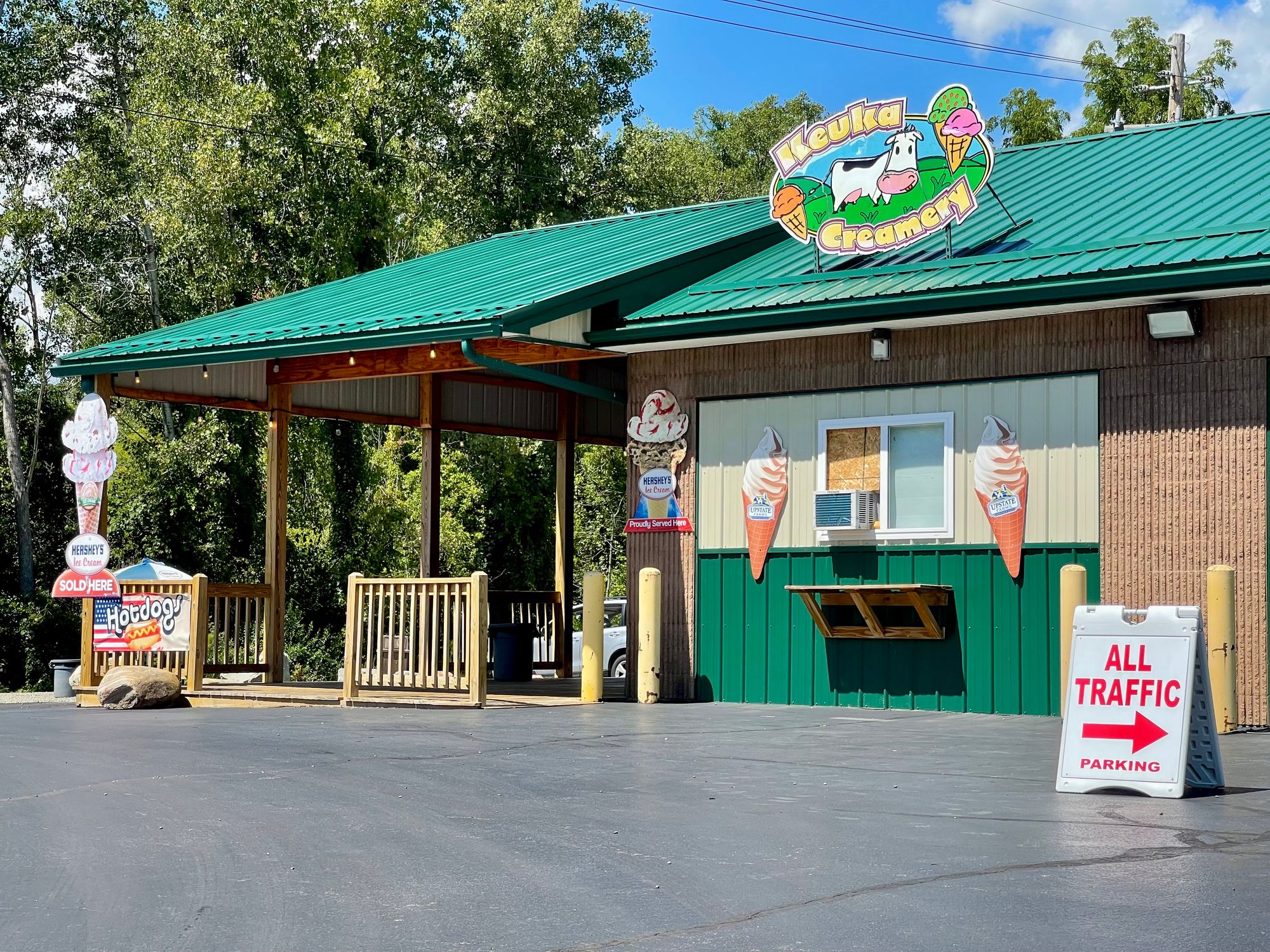 The ice cream parlor is one of the main attractions, in large part due to its ample outdoor seating space.