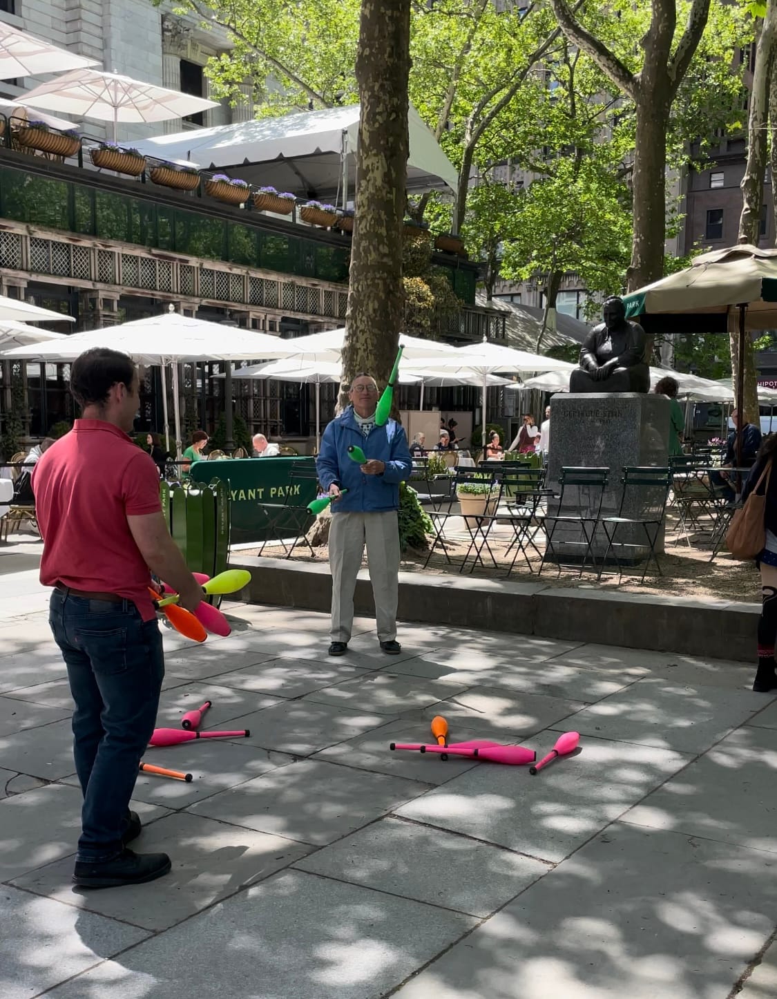 Another of Bryant Park's popular offerings is its juggling classes. You can often catch people spinning and twirling colorful batons throughout the year as they learn to master their juggling skills and fascinate onlookers.