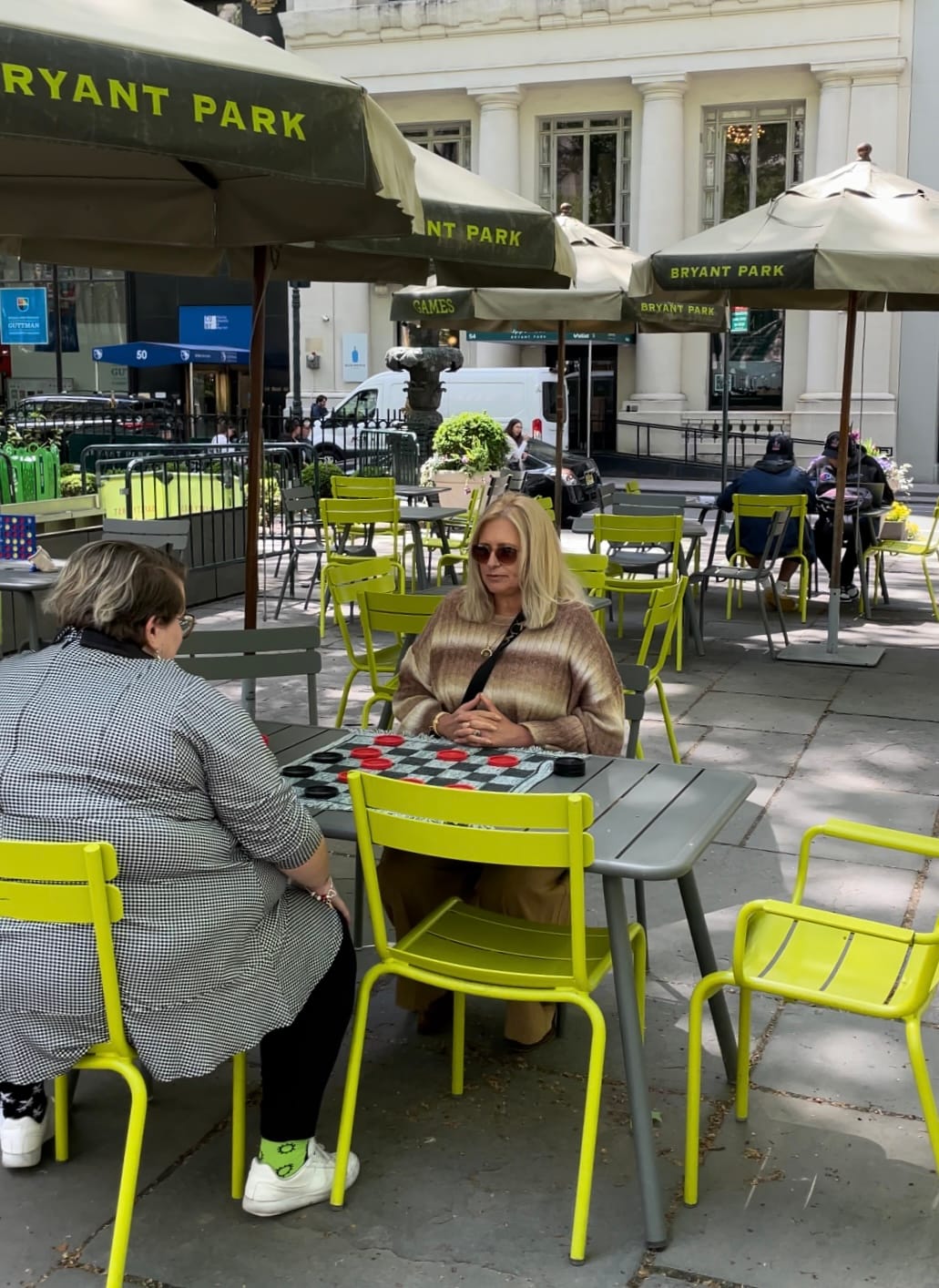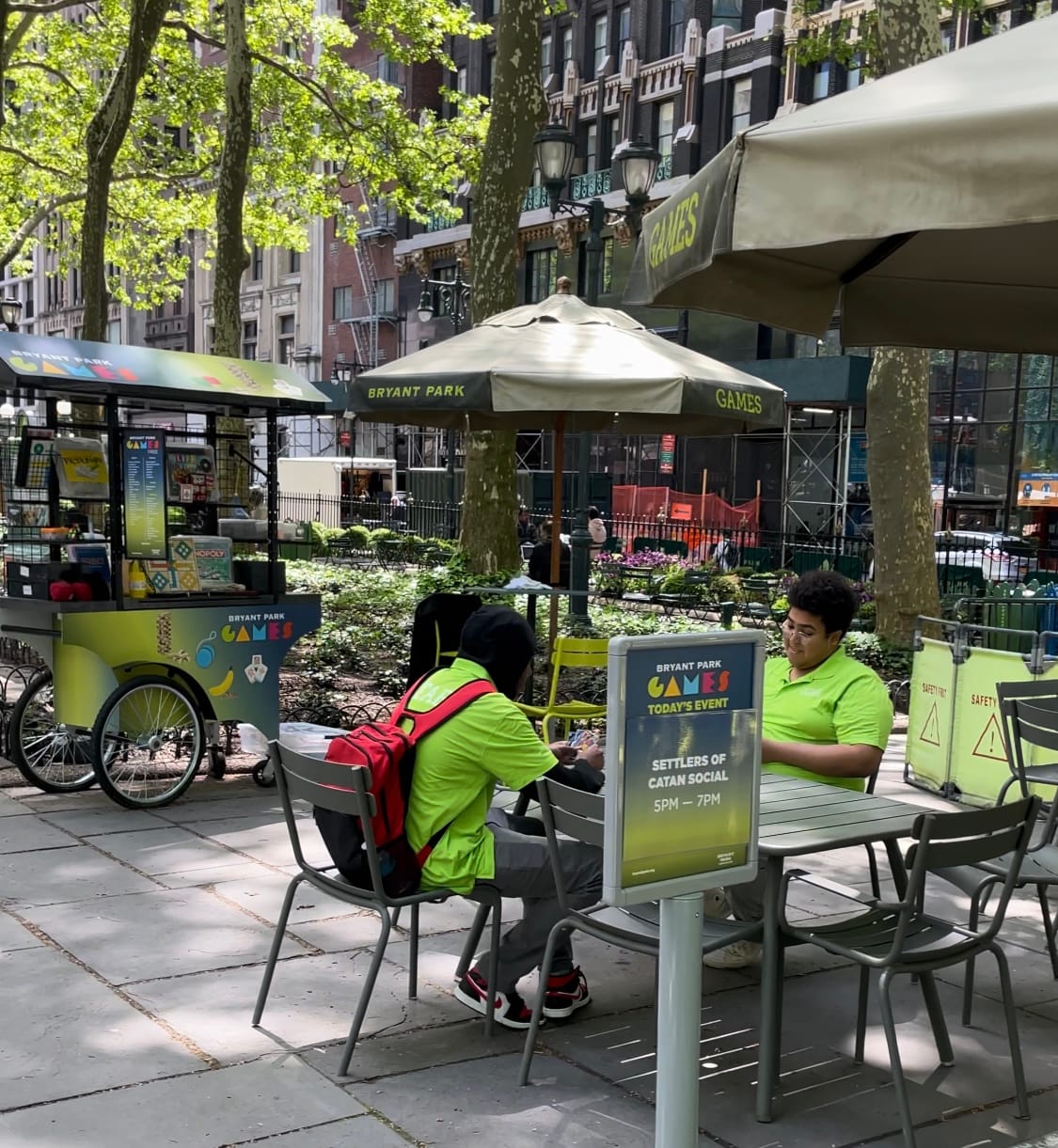 One of Bryant Park's staples is its ping pong tables. Here, you can see people of every age and background facing off against each other in friendly competition. Ping pong is a great activity for a public space because it is safe, simple to play, and welcoming for people of all ability levels.