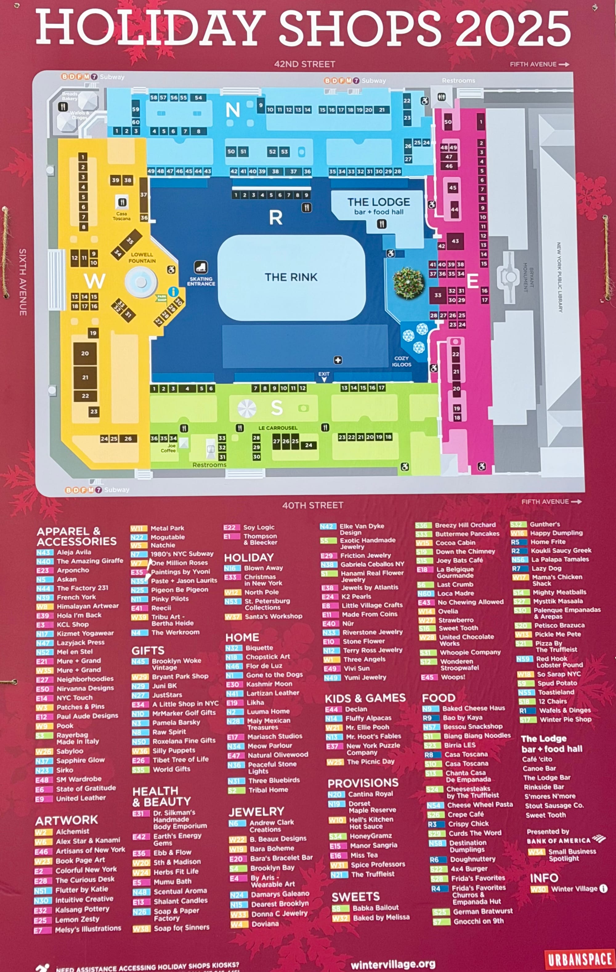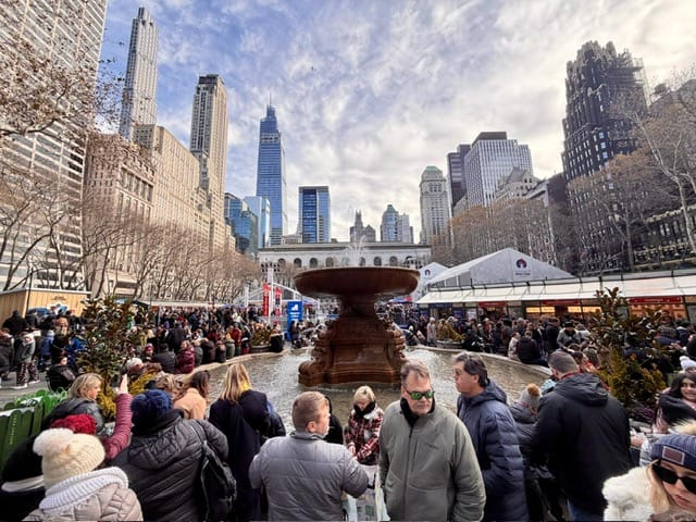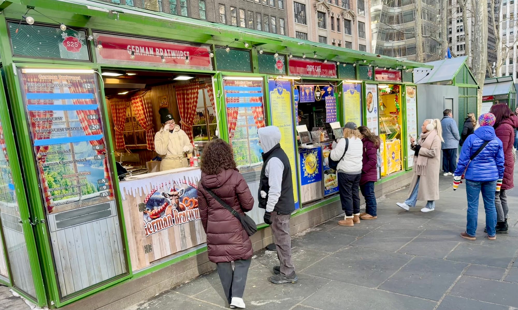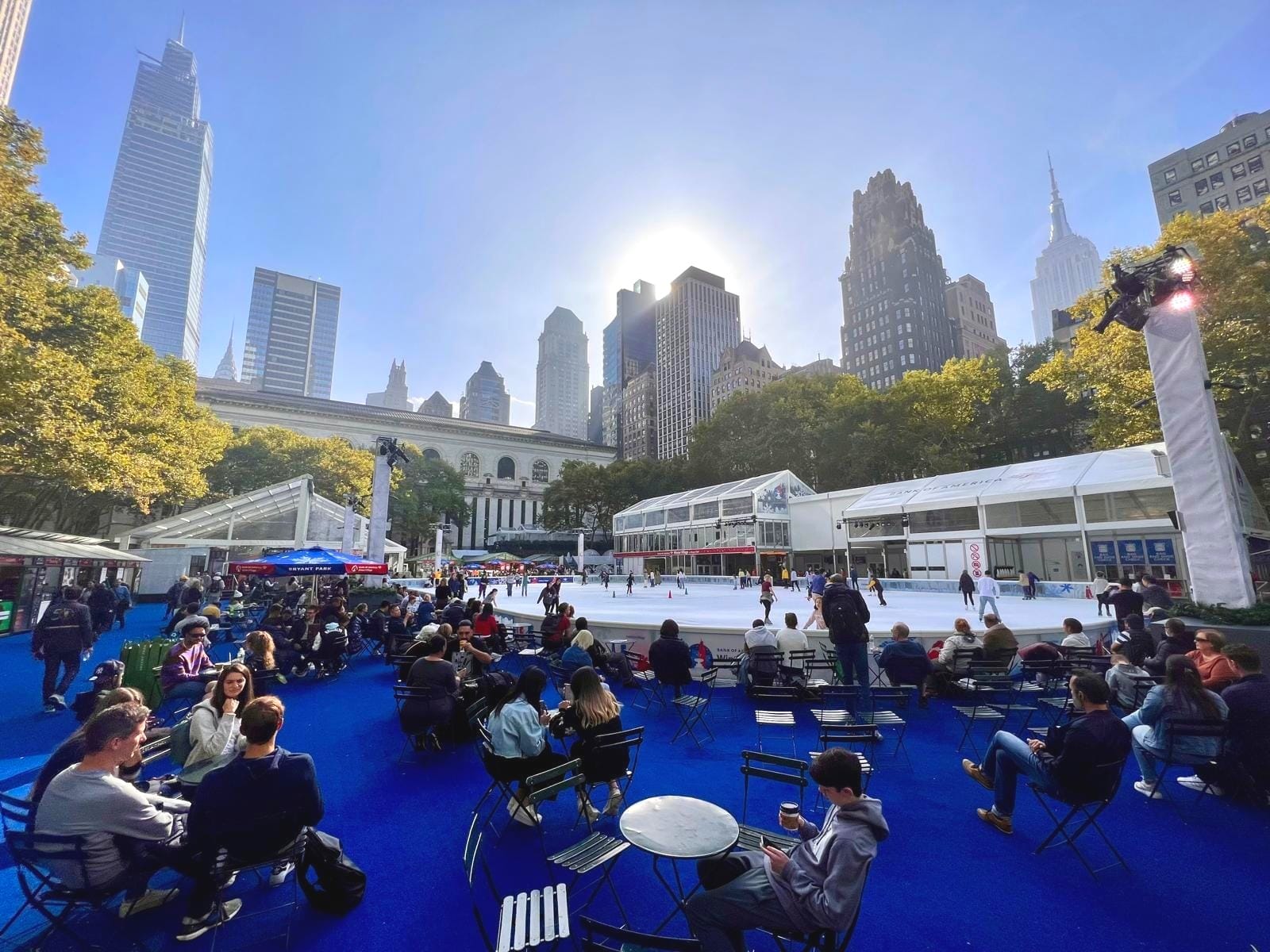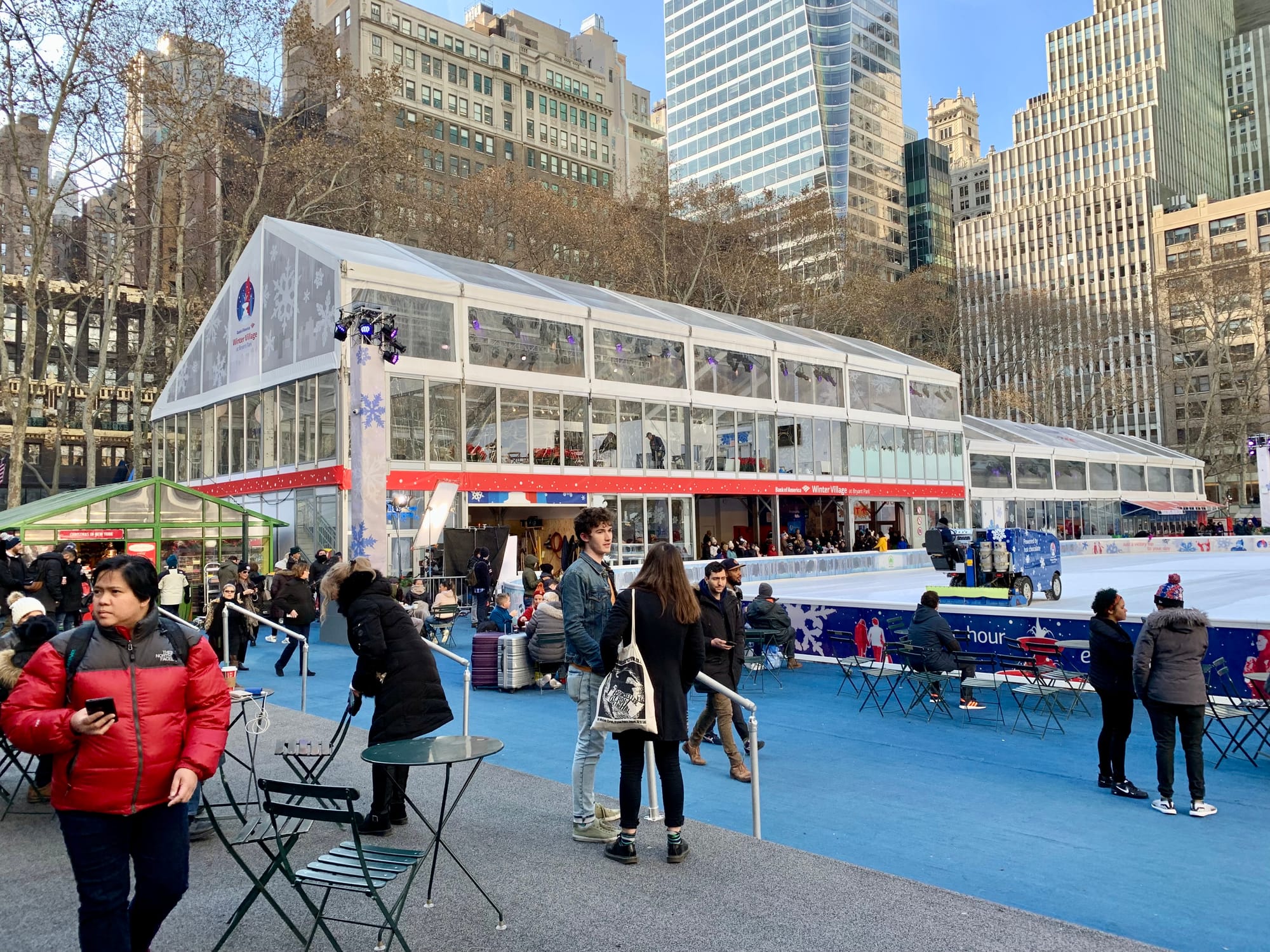 Bryant Park's Winter Village is one of NYC's holiday highlights. With its charming booths full of artisan crafts, souvenirs, and festive treats, it brings a wave of joy and energy to the park every year, while supporting small businesses. The market weaves through various parts of the park and surrounds the main attraction – the ice skating rink – so that foot traffic flows in all directions.