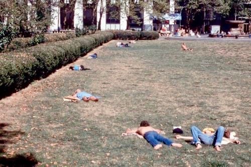 Historic view pre-1970. Note the hedges that reduced visibility and accessibility in the park. Left photo source: Gothamist Right photo source: PPS (c.1979)