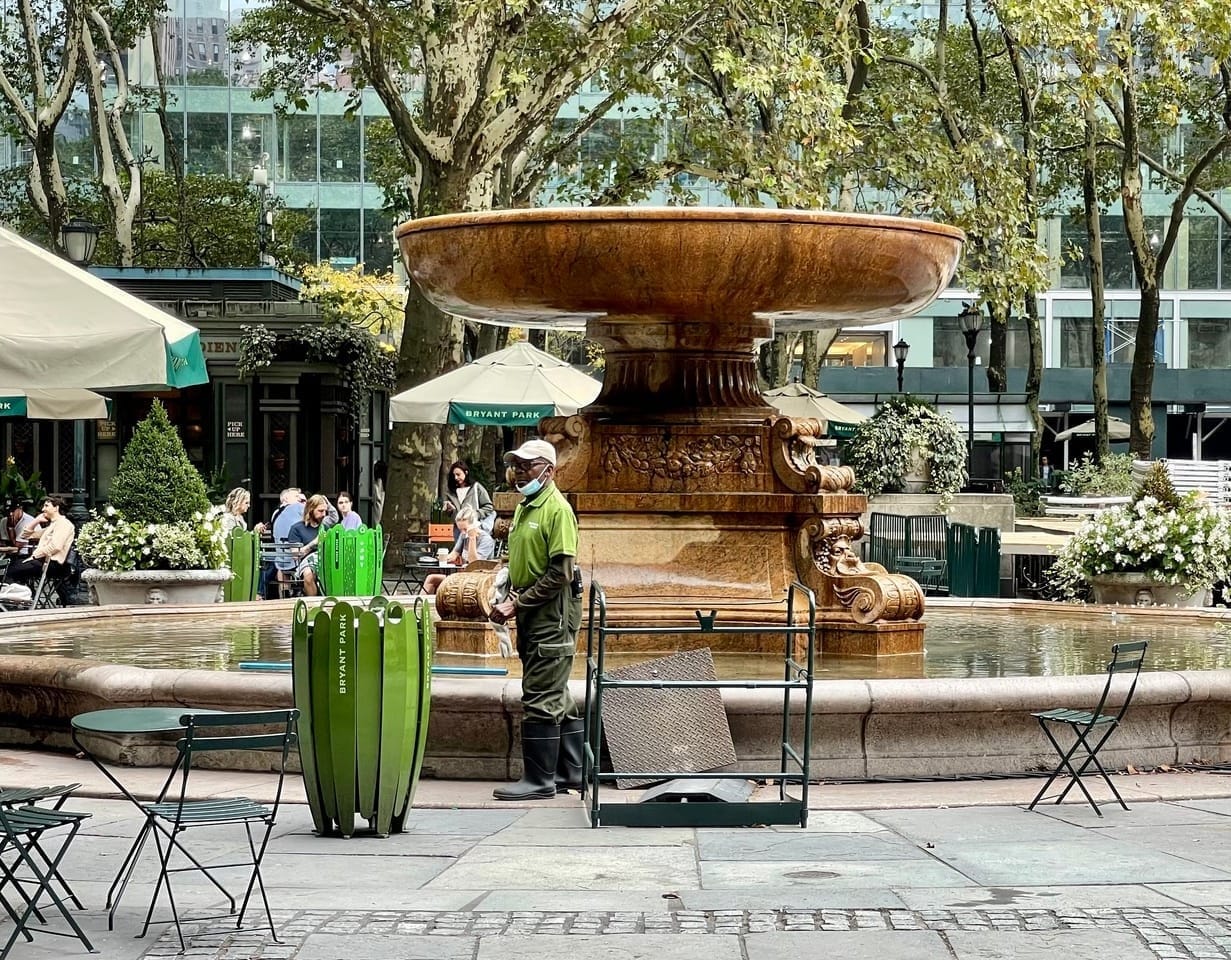 Highlighting the park's existing focal points and adding more of them was another important change to make the park more visitor-friendly. The fountain has been in Bryant Park since the beginning and naturally attracts people, as such landmarks – especially water features – always do. But without places to sit in its vicinity, it was just something to take a photo of and move along. Once seating and refreshment areas were added around it, the fountain became a true destination, gathering point, and a defining feature of the park.