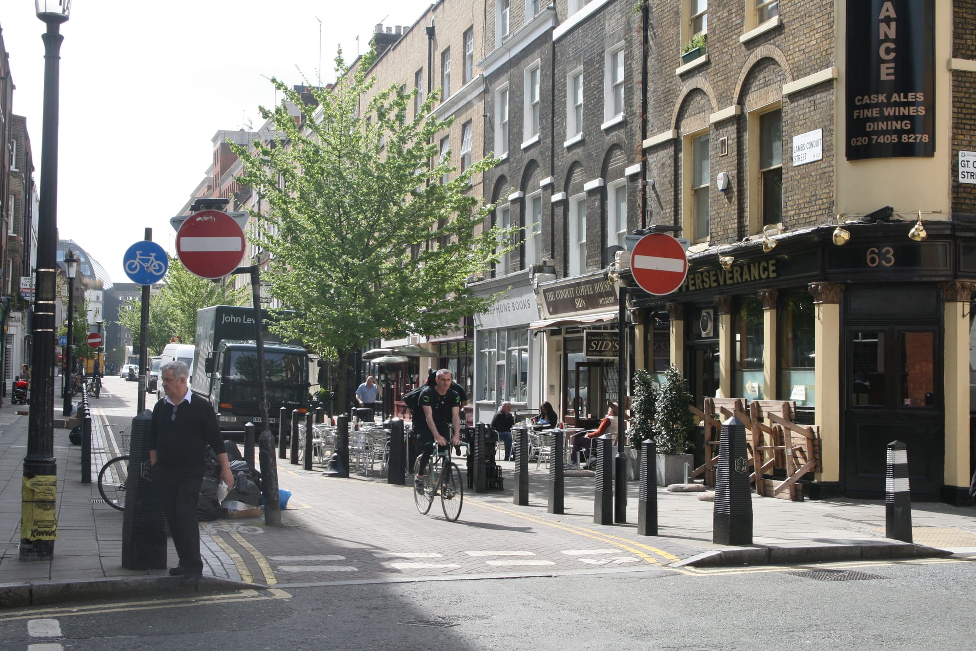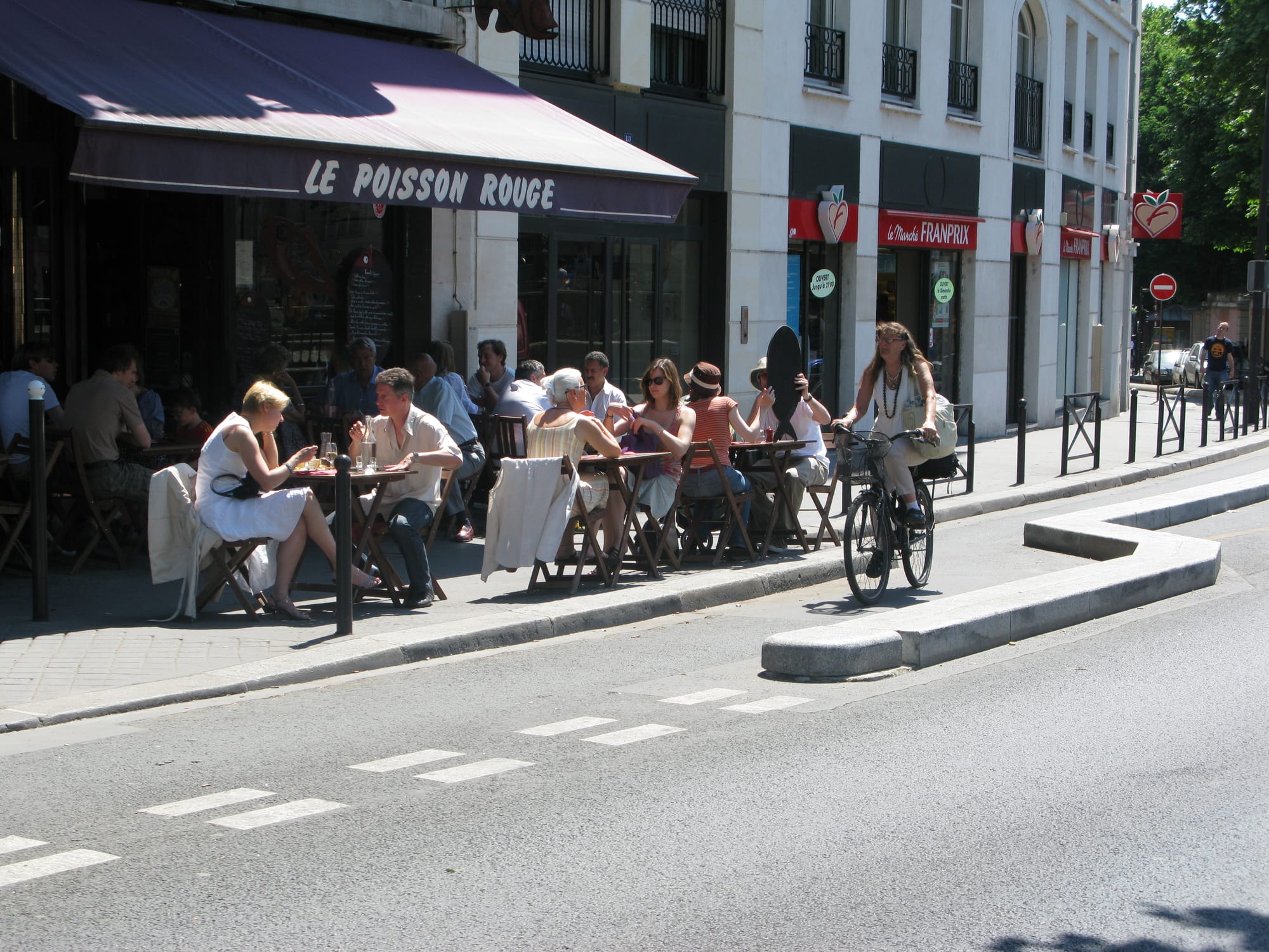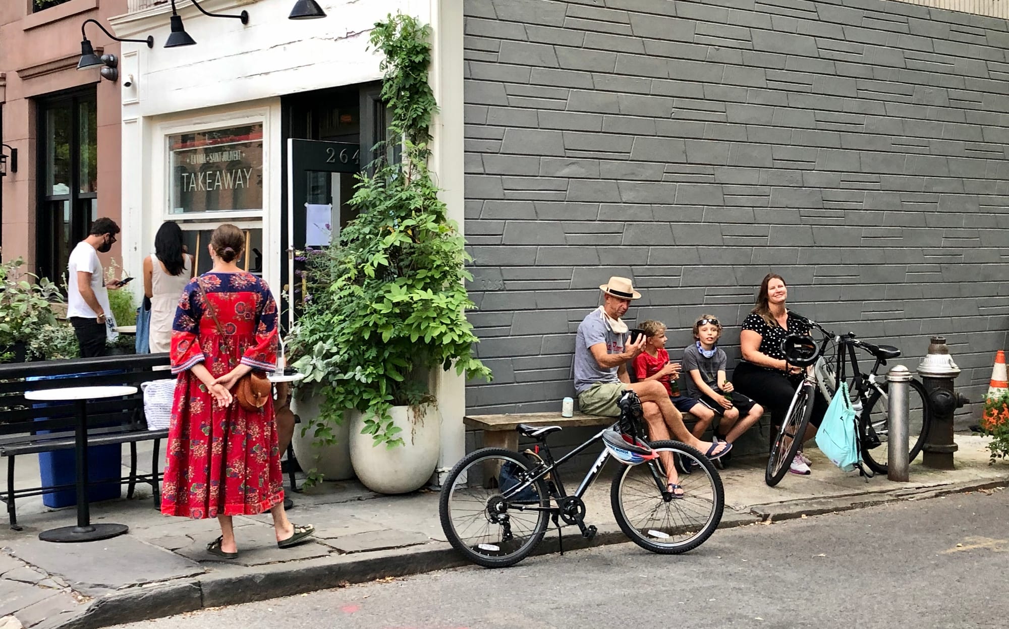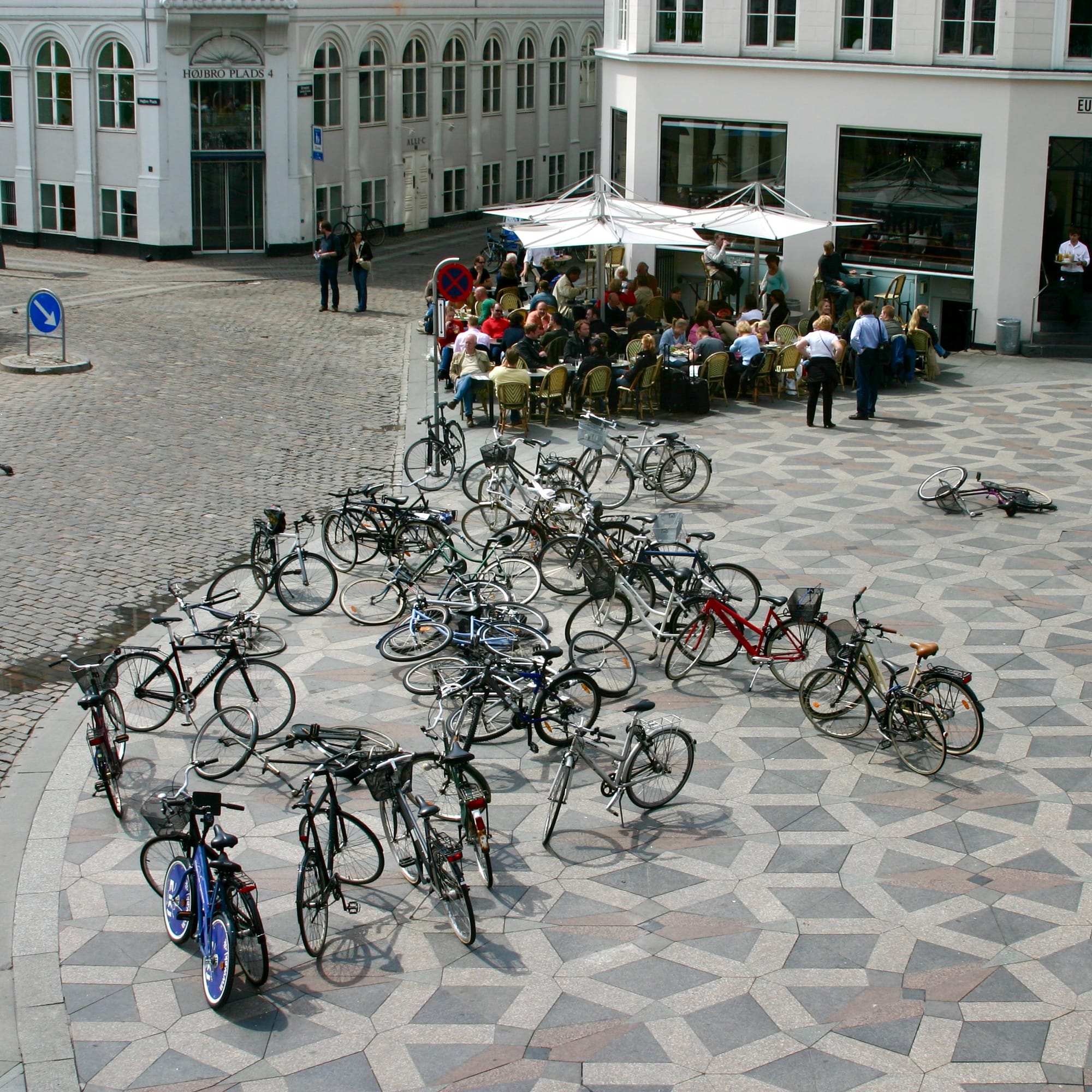Another case of sharing the street not working is when there are too many bikes dominating corners and intersections. We are strong advocates for utilizing the corners of a street for social and commercial life. These key spots need to be reserved for cafés, restaurants, and other uses that bring people together. When they're used to store bikes, the space for other activities is minimized and the corner is unable to live up to its potential. Corners full of activity are what we want to see – not corners for bike storage.