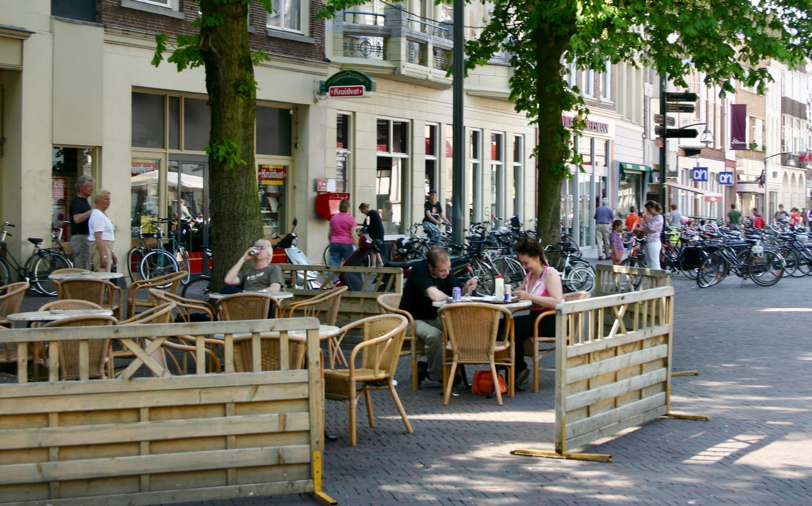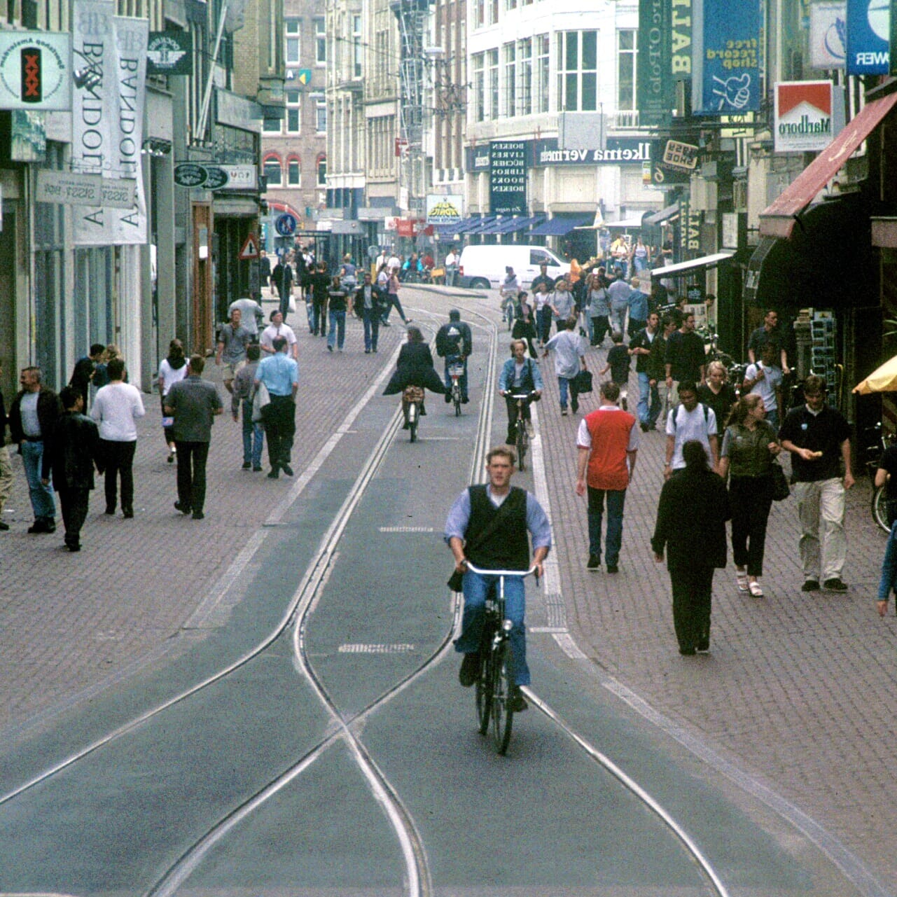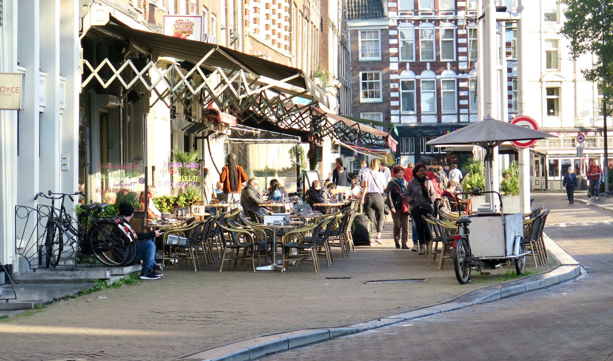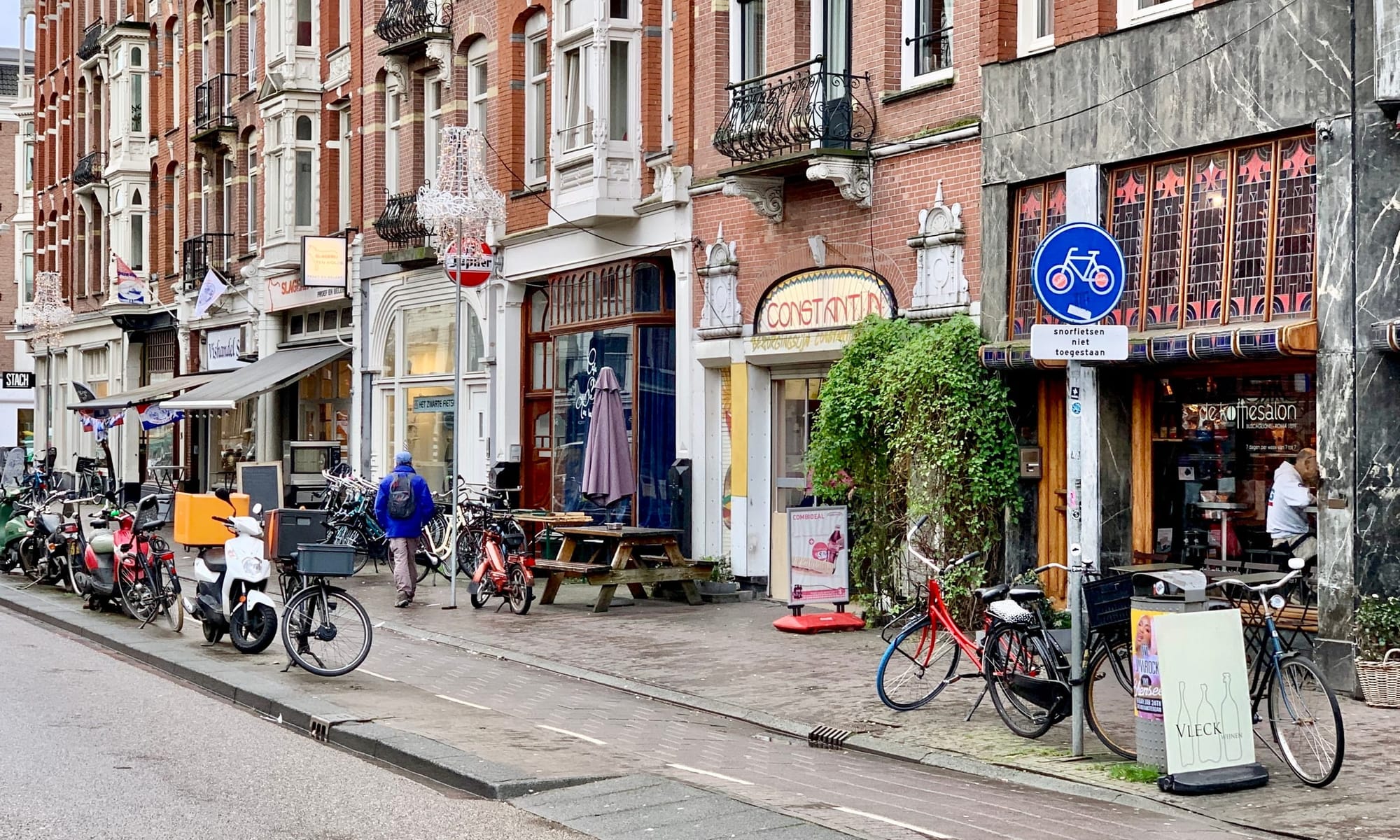 In cities where bikes have a high priority, sometimes the sidewalk and pedestrian life suffers. In the same way cars eat up too much space in most cities, in some cities bicycles do so, robbing pedestrians of their share of the street when cities deprioritize sidewalks and sidewalk life in favor of bike infrastructure.