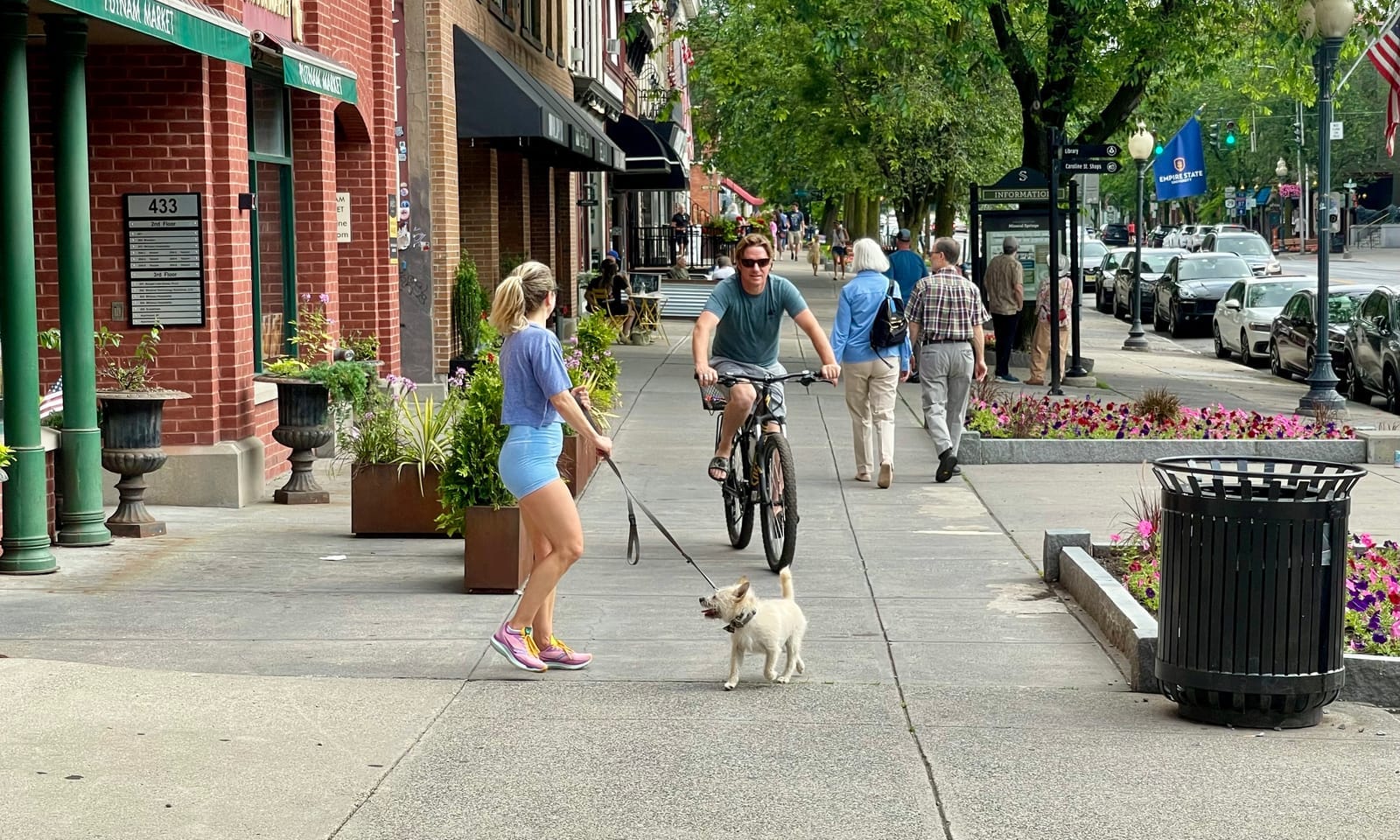 In the types of downtowns that are cycling-friendly, drivers drive more slowly and cautiously, and everyone enjoys a calmer atmosphere as they coexist peacefully with the people around them. In cities with narrow streets and/or an expansive network of protected bike lanes, we see a large presence of bikes because cycling is safe, comfortable, and encouraged. This draws out pedestrians as well since it is the overwhelming presence of cars that tends to drive them away from a place.