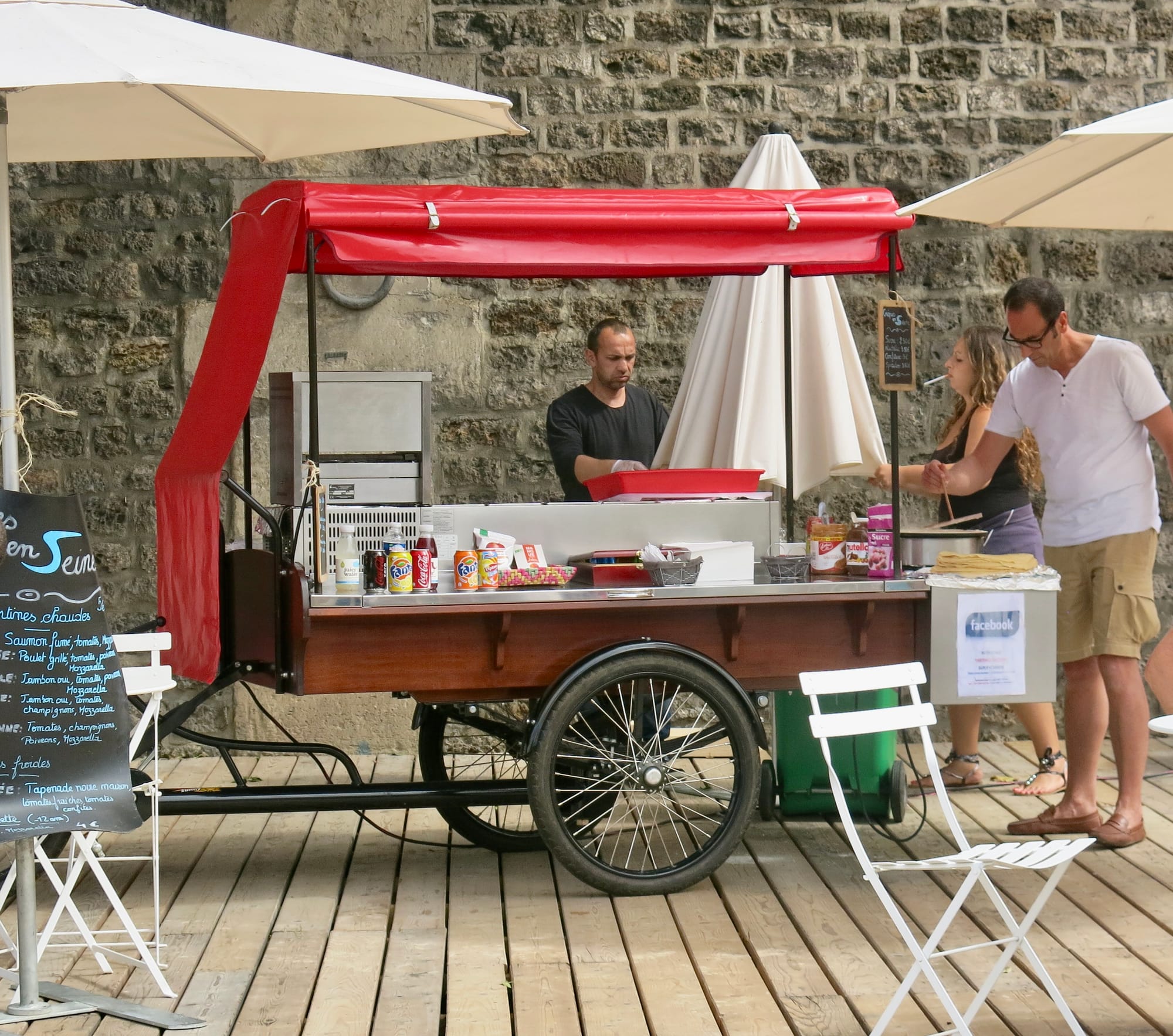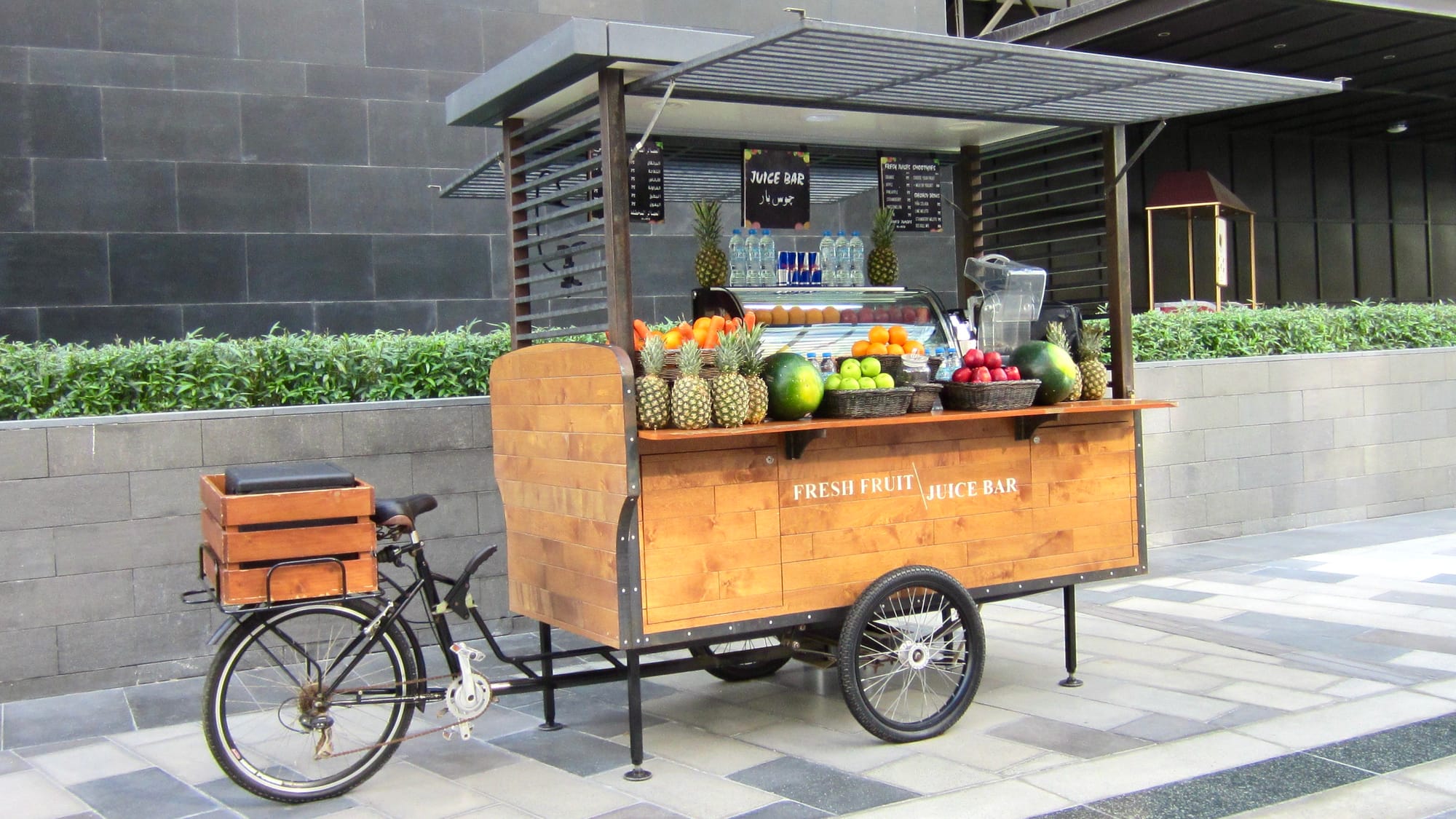 There's a lot two, and especially three, wheels can carry, including a whole café on wheels! With a little reshaping, some added signage, storage, and shade, a simple bicycle can become an entire destination.