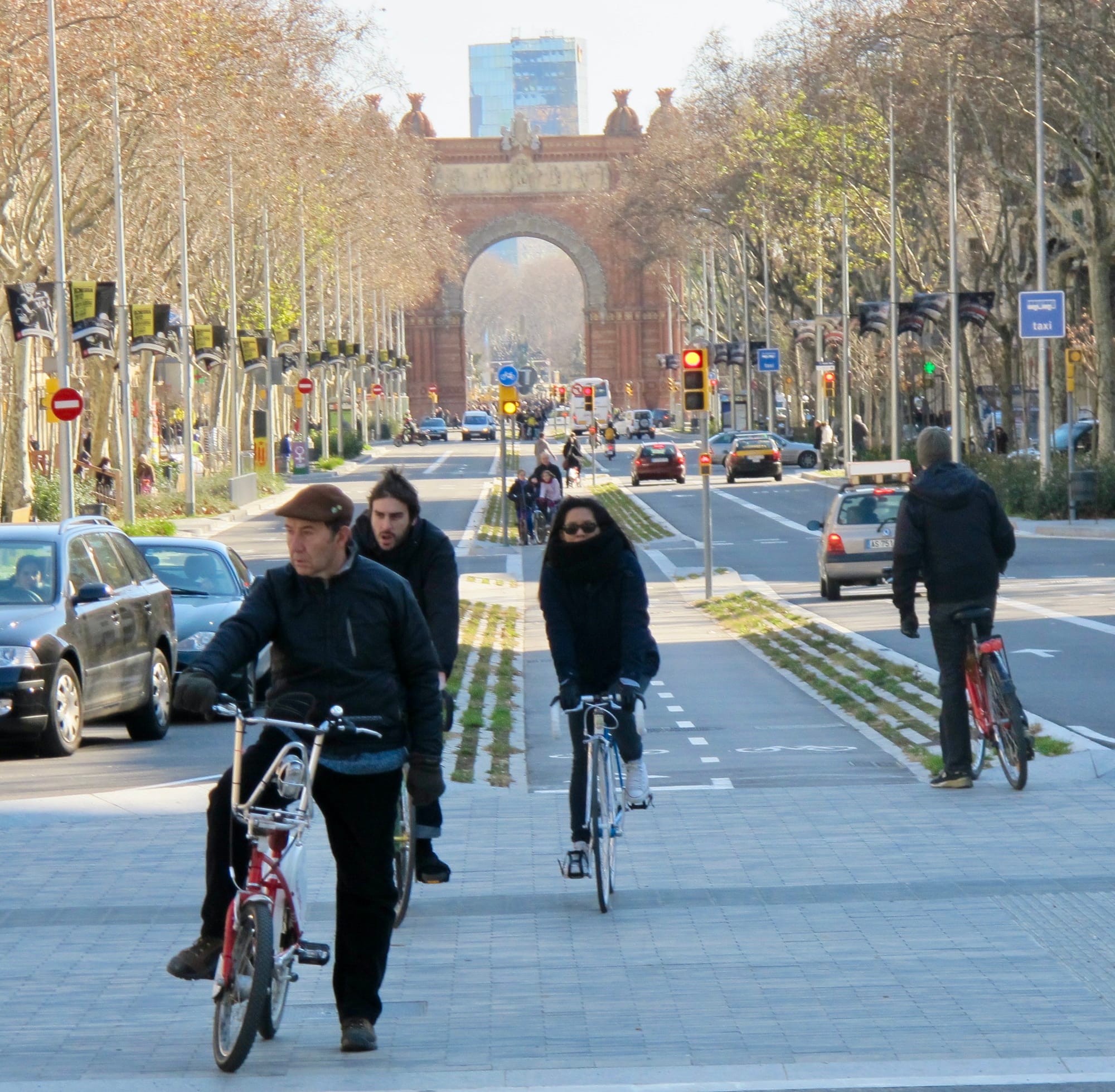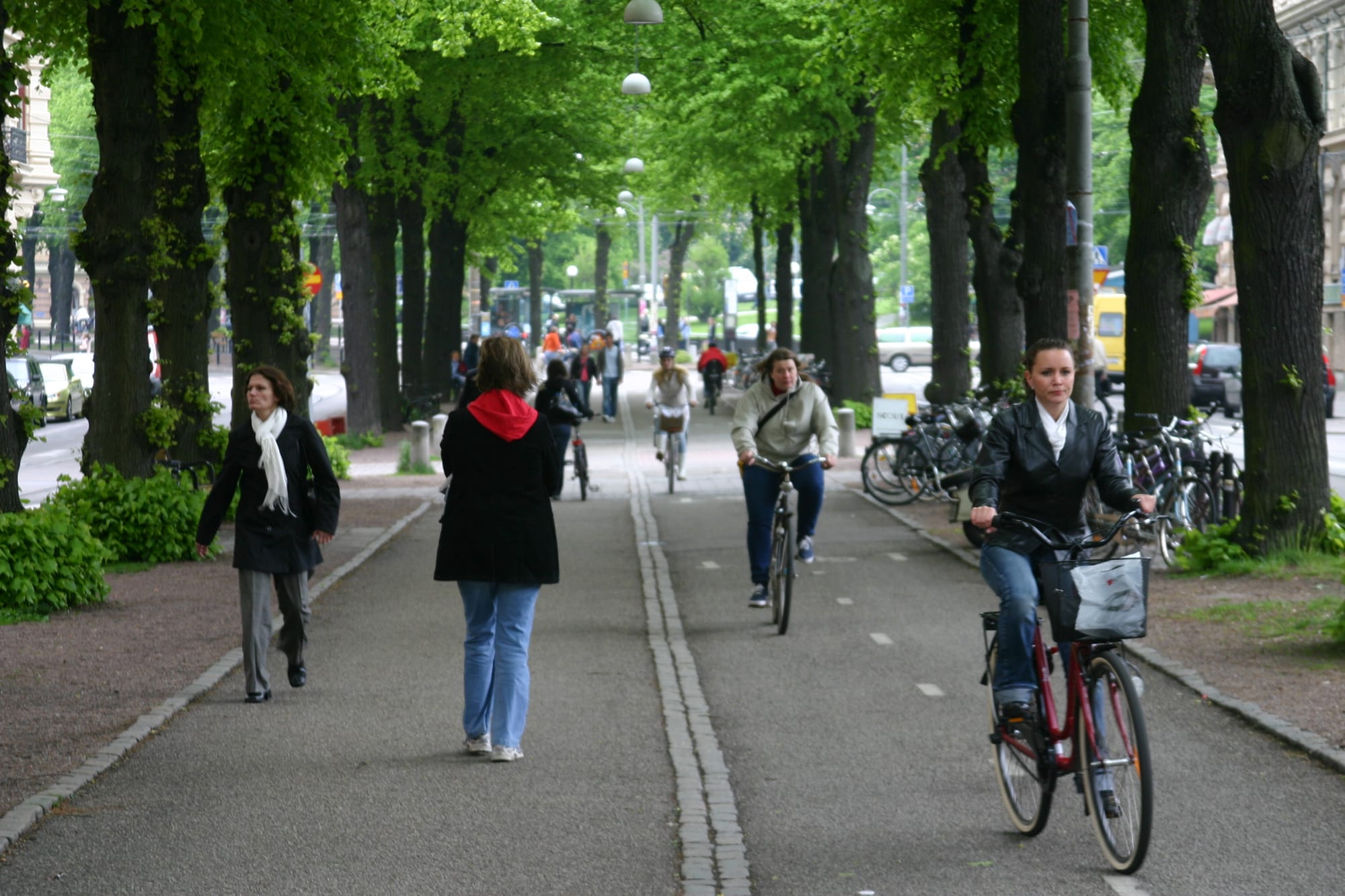In some cities, like Copenhagen, green cycle paths are created that cut right through the heart of the city so that people commuting by bike can have their own space to do so, separate from vehicles. This makes it easier, faster, and more comfortable to cross large distances by bike, whether to work or to go across town to see family, etc. It also makes the experience of cycling enjoyable as trees and gardens are used to fill the space that car traffic used to.