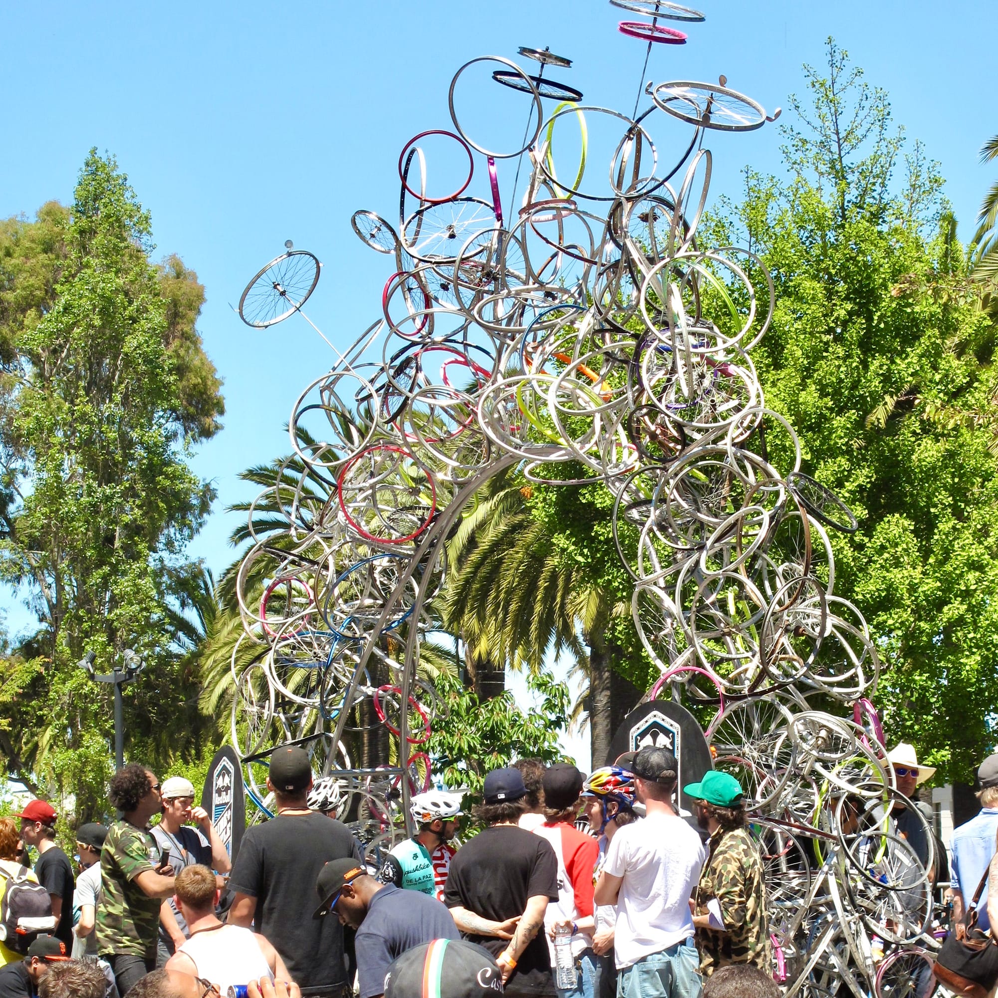 With bikes being such a prominent part of daily life for so many people, they are perfect inspirations for art of all kinds. We've seen sculptures of bikes, bikes as street furniture overflowing with flowers, and even bikes as decorations for homes or restaurants.