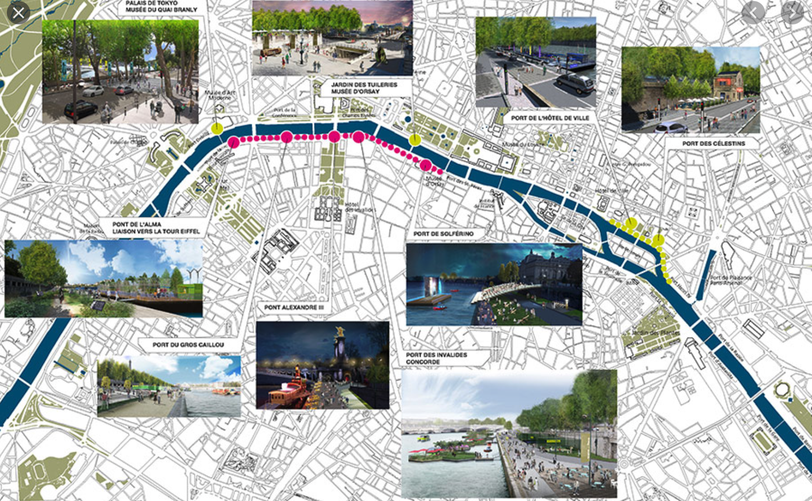 - The busy highway along the Seine was transformed into a vibrant boulevard, with numerous amenities and regular programming along the river banks.