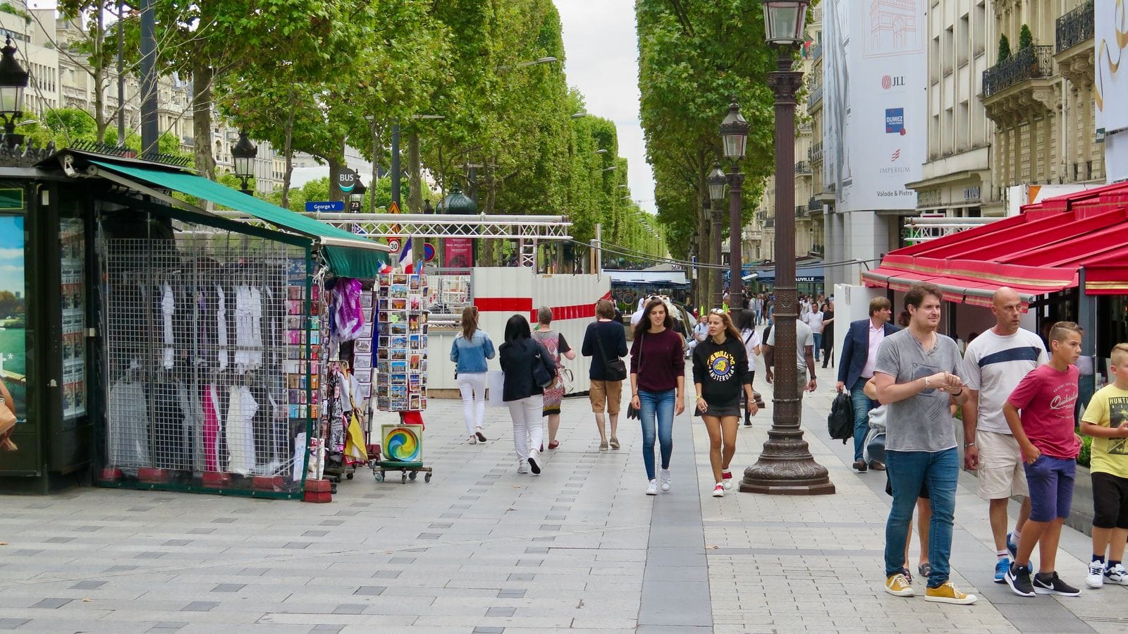 For example, the famous Champs-Élysées leading up to the Arc de Triomphe may have 8 lanes of traffic, but the sidewalks on either side of it are nearly as wide as the street. What's more, they are full of trees, kiosks, benches, shops, and street performers, making it pleasant to walk there even though they run alongside Paris's heaviest traffic. Now, there's even a plan to reduce the number of lanes on the Champs-Élysées from 8 to 4 by 2030 in order to increase the space dedicated to greenery as well as commercial and social activity.