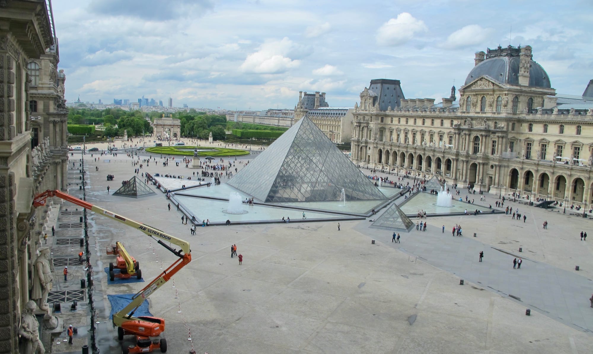The grounds of the Louvre act like a vibrant square that invites visitation in its own right, especially as it is anchored by the central landmark of the pyramid and its fountains. What's more, it seamlessly blends into the adjacent Tuileries gardens which are a vibrant park and public place.