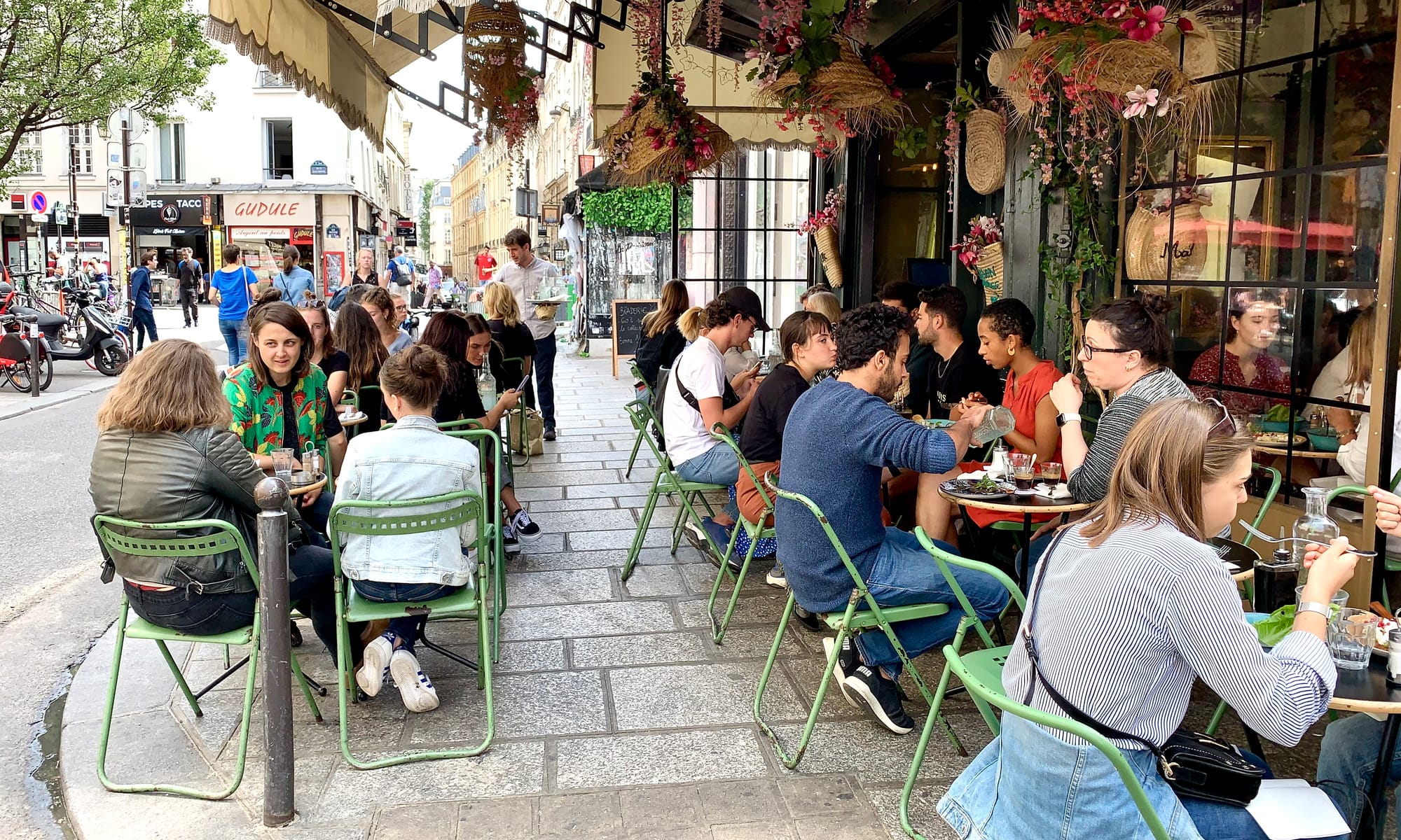 In most cities, corners are swallowed up in the car-dominated realm of the intersection – unpleasant places to linger because there's nothing happening there except for cars zooming in all directions. But in Paris, corners are treated as top real estate. Paris' corners are the sites of some of the best restaurants, shops, and cafés. Because of these vibrant nodes, the street network is much more lively and well-connected and its intersections are less hostile and unpleasant.