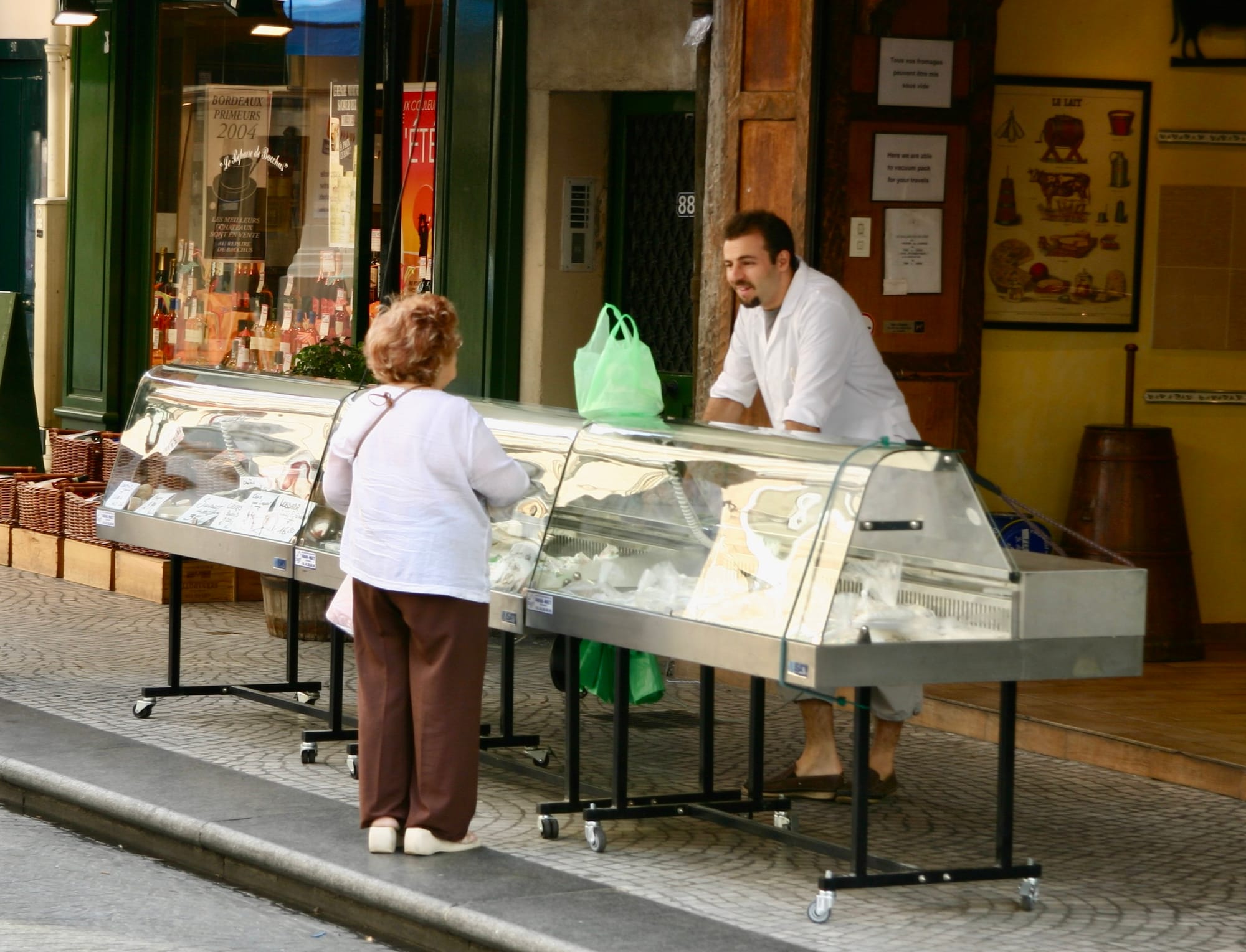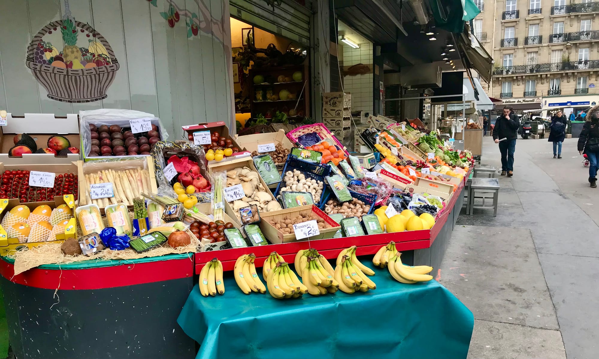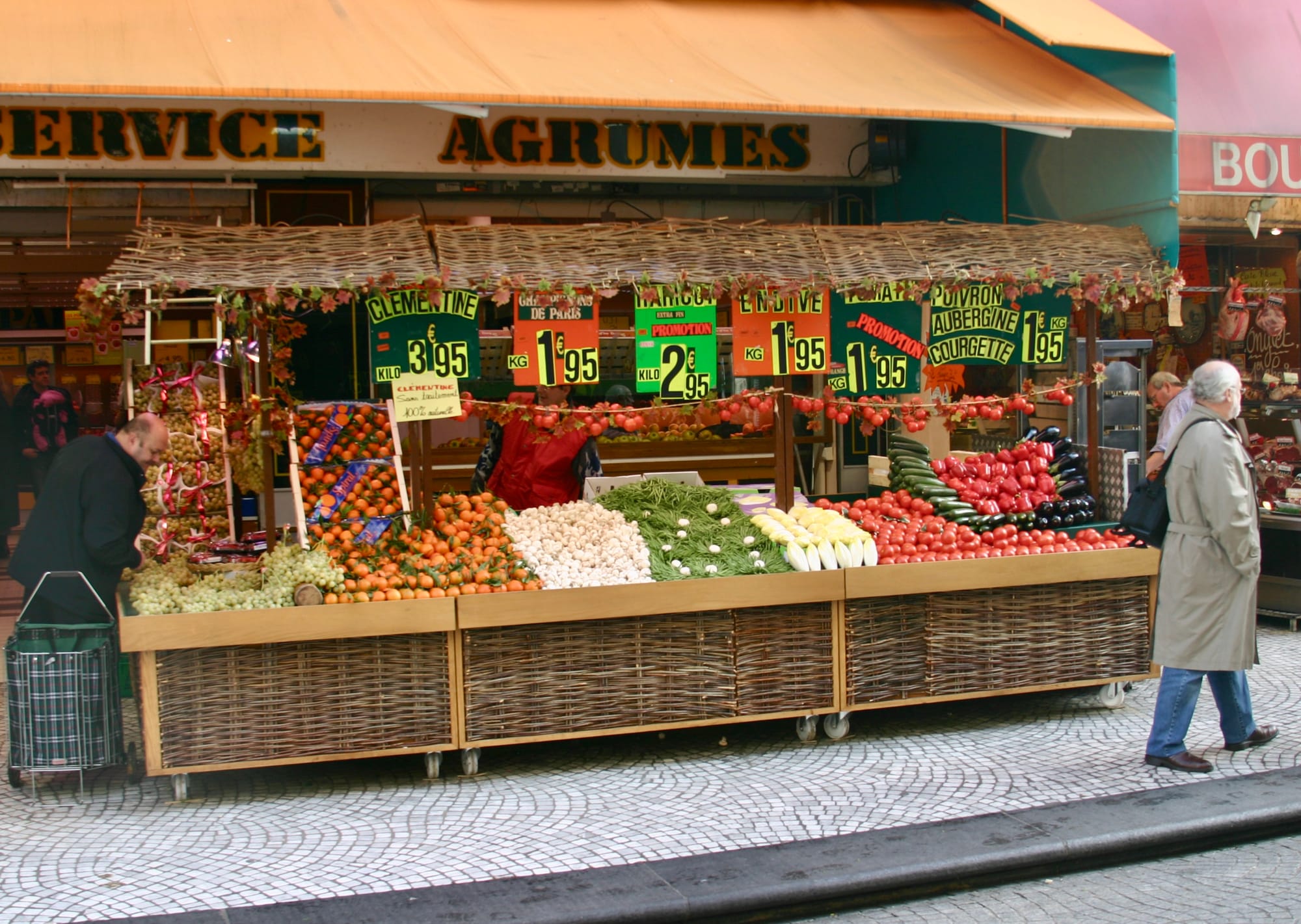 When you spread the concept of inside-out design all down the street, you often get "market streets" – streets that feel like linear markets because of how their goods are displayed outdoors in the public eye, attracting shoppers and activity. In many of Paris's neighborhoods, these market streets constitute a social and commercial backbone and the sites with some of the highest energy and vibrancy.