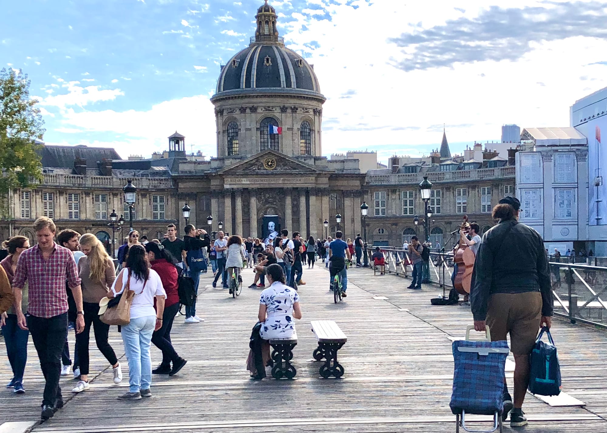Pont Neuf, which opened in 1607 was the first bridge to cross the Seine, and is one of the most social of Paris’s many bridges, primarily because of multiple places to pause, enjoy the views, or just pass the time. In a way, it acts as a market and performance space as well as a promenade.