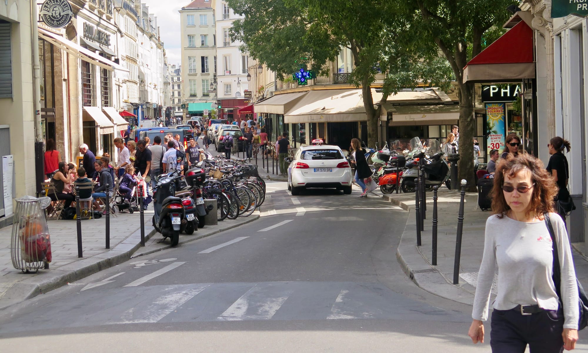 Whereas many cities seem to believe streets are only for cars, Paris understands that this is far from the case. Streets in cities should be for social and commercial activity. The street is, after all, the stage for urban life. That is why Paris is full of great pedestrian streets where cars are not welcome or low traffic streets where pedestrians are prioritized.