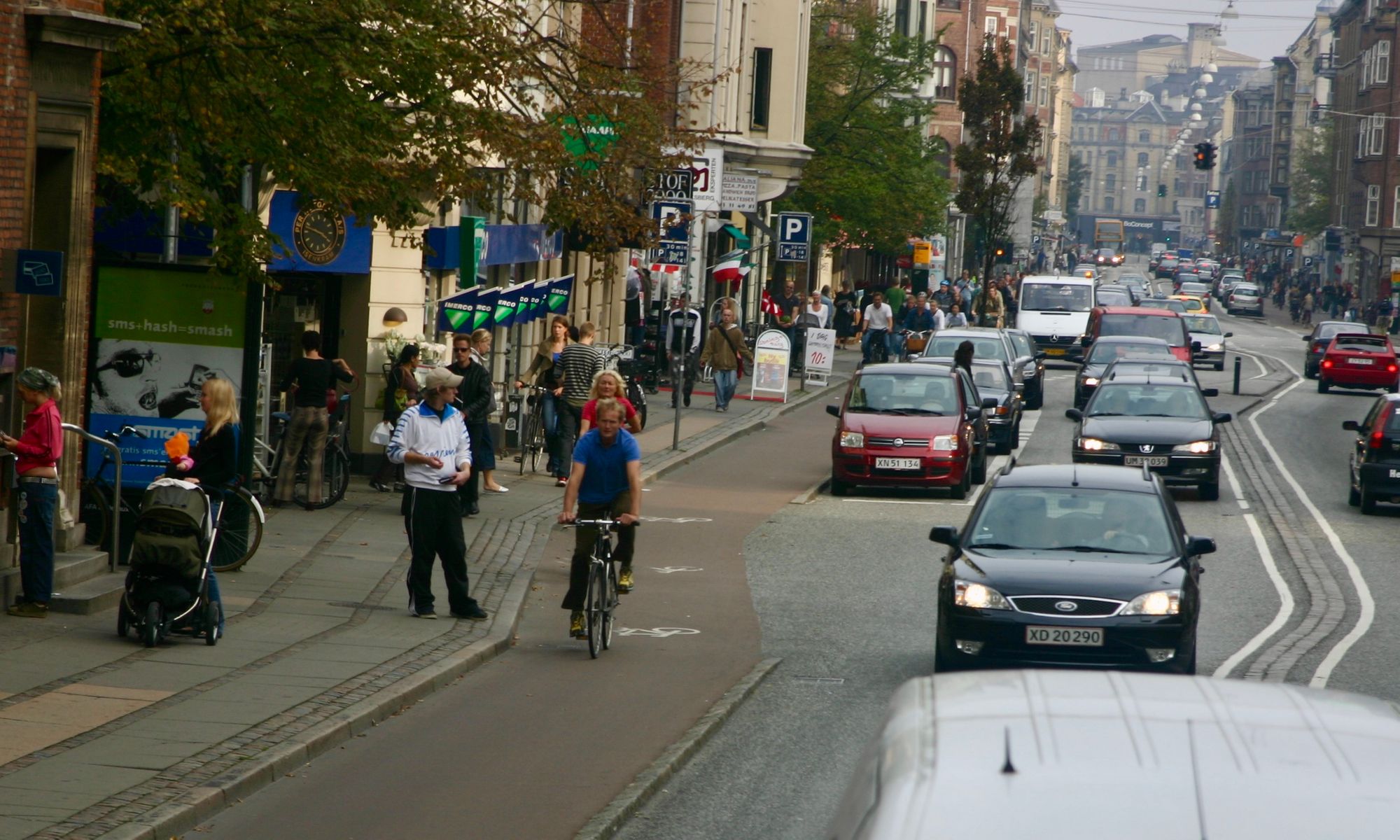 Outside the center of Copenhagen, many sidewalks have become "slivers of pavement" creating claustrophobic and unsafe conditions for walkers