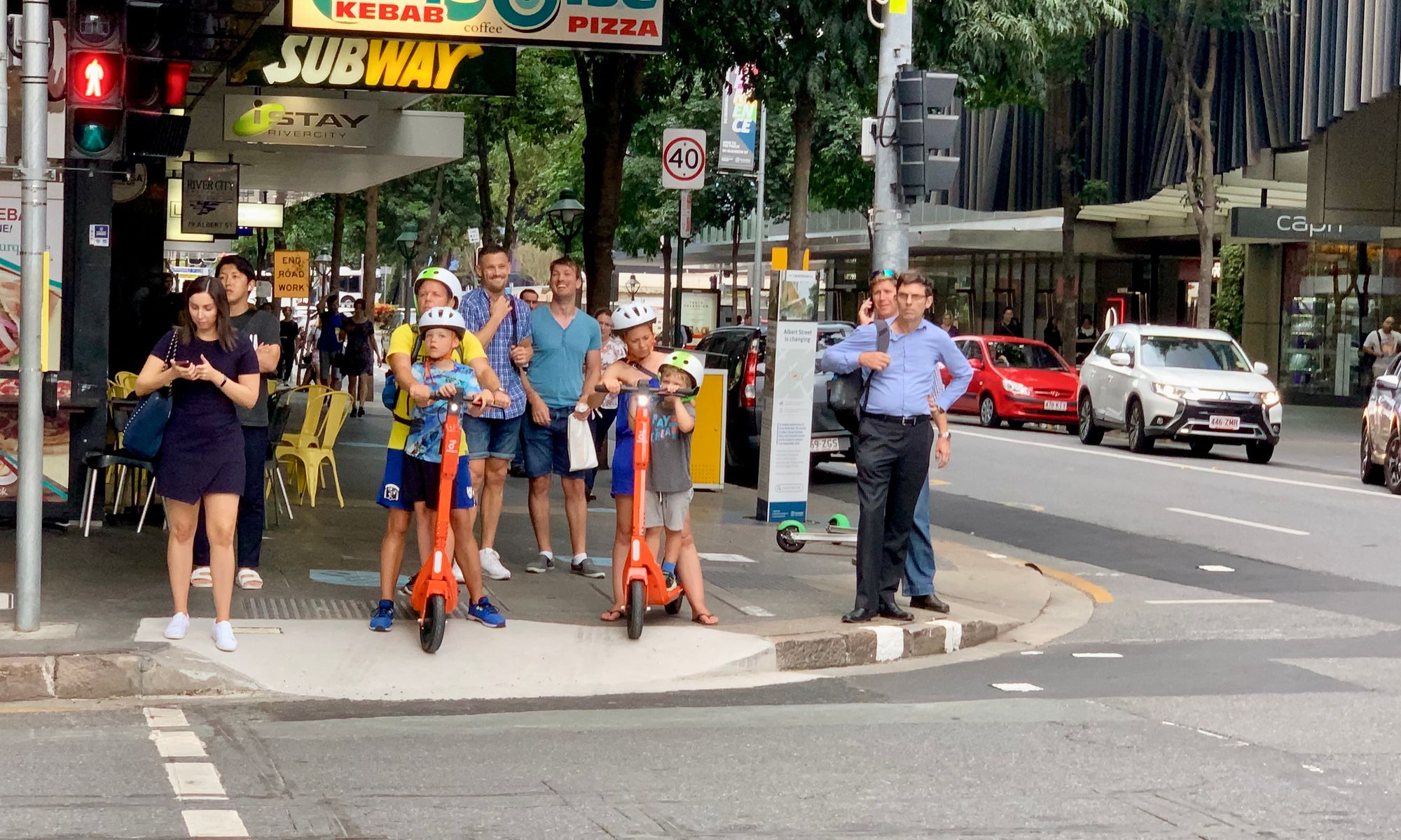 Segregation of streets exclusively for vehicles: In the Australian city of Brisbane, bikes and motorized scooters are required to use sidewalks so as to not slow car traffic. The upshot of this regulation is that "pedestrians" feel less safe, bike- and scooter-riders are not well-served and, ultimately, the social life of the city is diminished.