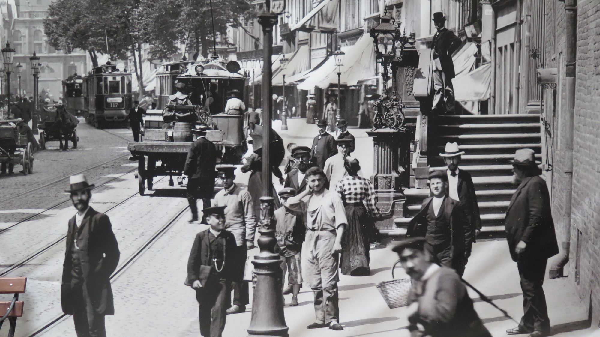 In these historic images, one can't help but notice that there is significant casual/social activity on the streets. The streets are "shared" with people roaming throughout all areas, including those where cars and public transit are. There do not seem to be pedestrians in platoons walking along the sidewalks. Rather, people gather in small groups, socializing with friends and even strangers.