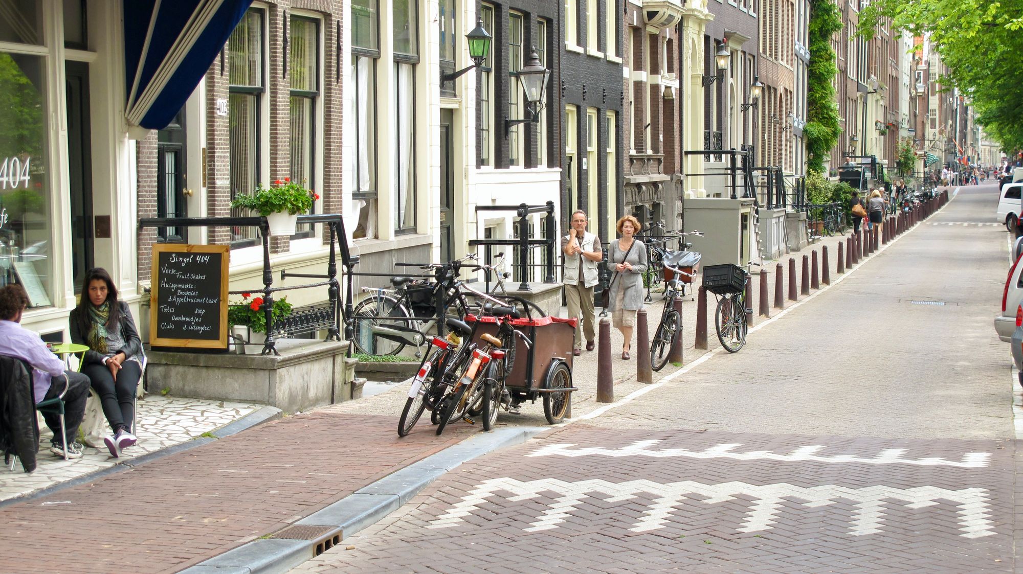 Shared streets are those where bikes, cars, and pedestrians are all welcome and respect each other's presence. Cars drive slowly which is why they are allowed to brush shoulders with pedestrians and cyclists.
