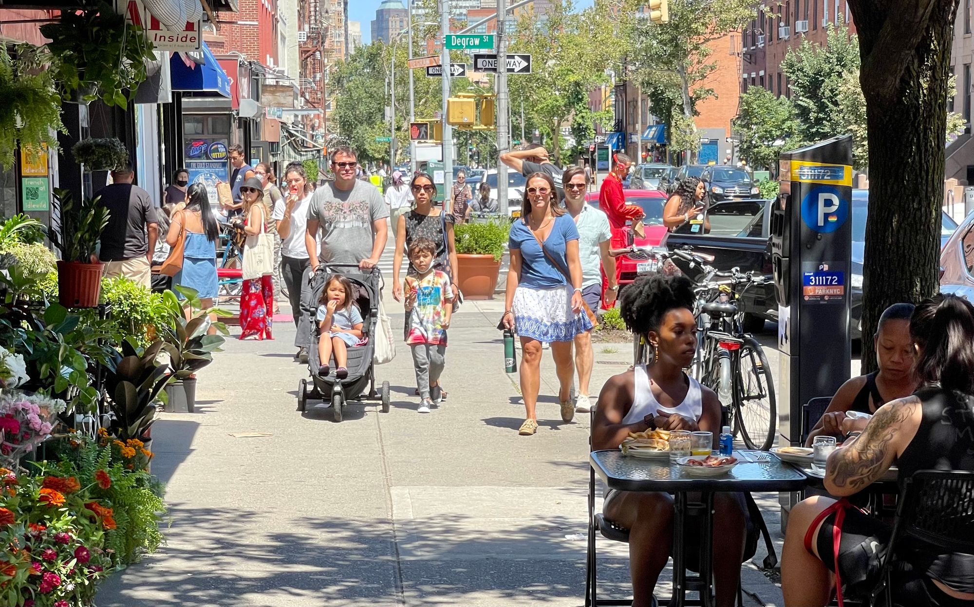The second step is to soften the overall feel of the street so that traffic speeds and volume do not squelch, but rather enhance, social life. Traffic calming improvements, shared streets, streets closed to traffic, and/or intersections made more safe for all users are important tools to make sidewalks and our communities better public spaces. They are not ends in themselves.