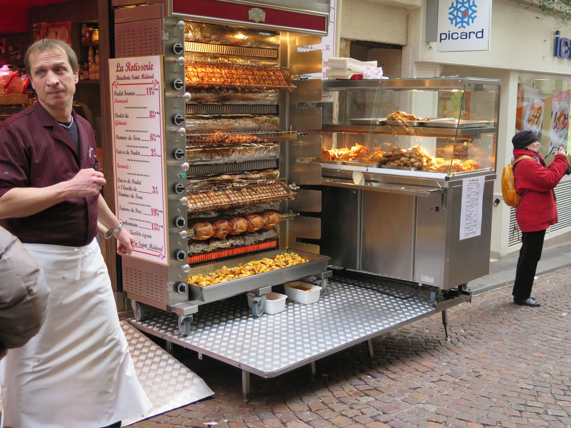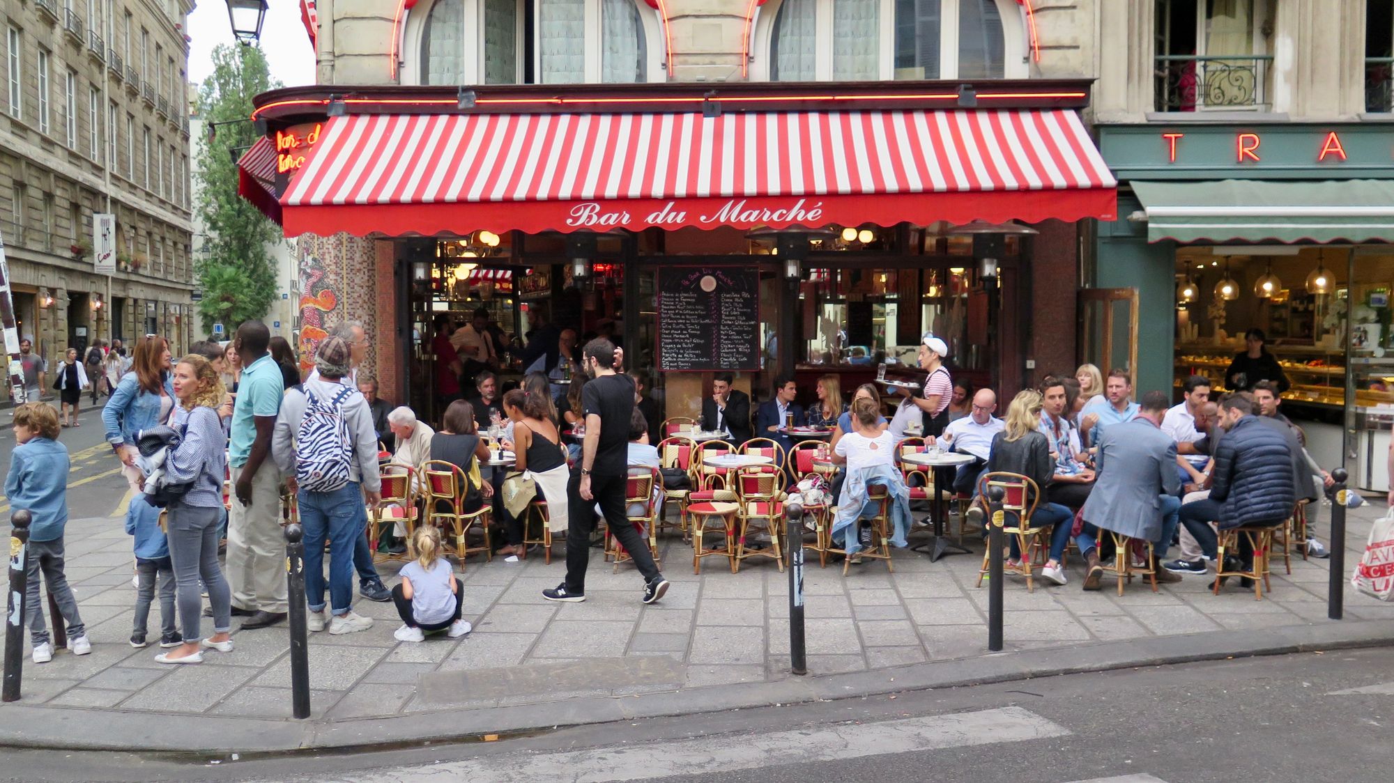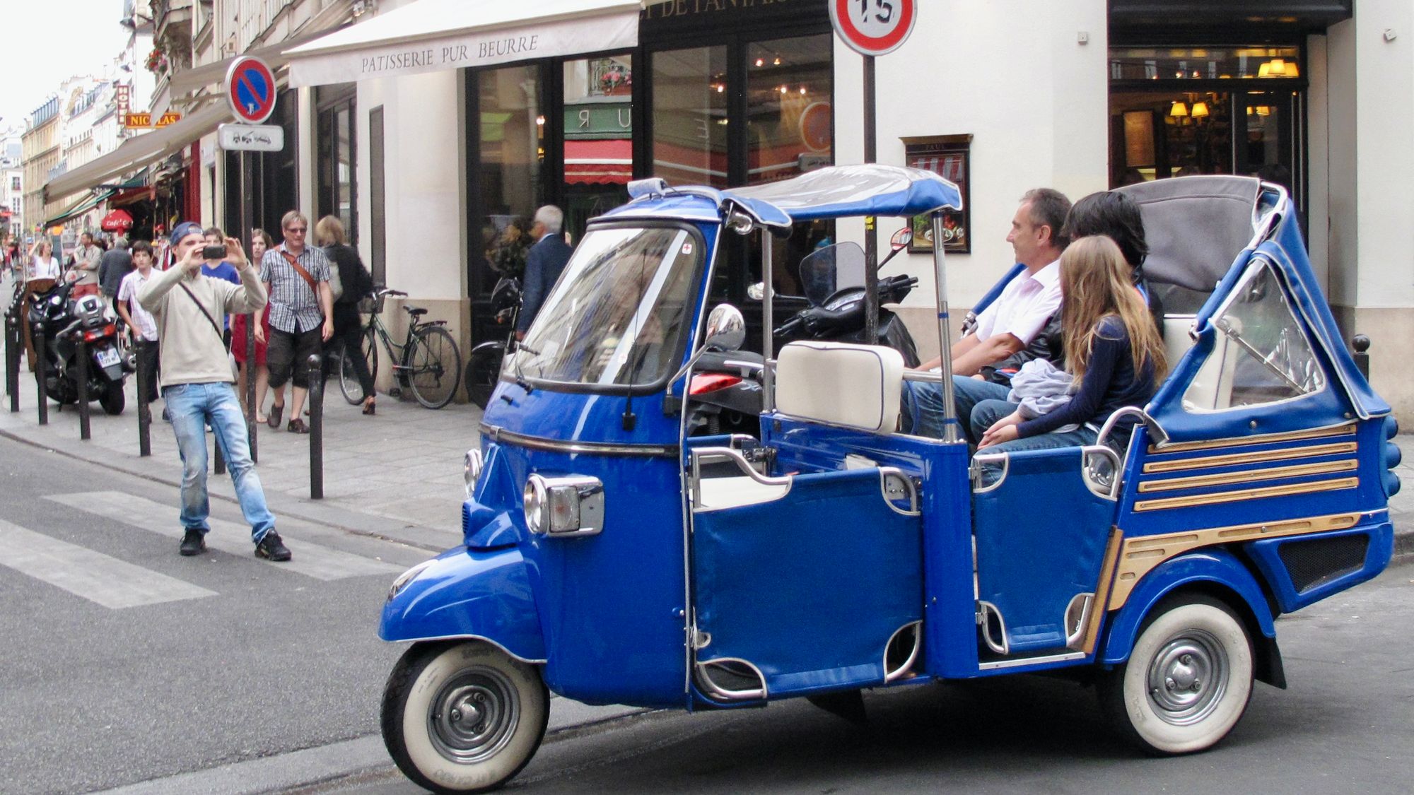 On narrow streets in Paris, the distinction between "storefront, "sidewalk," and "street" become wonderfully blurred.