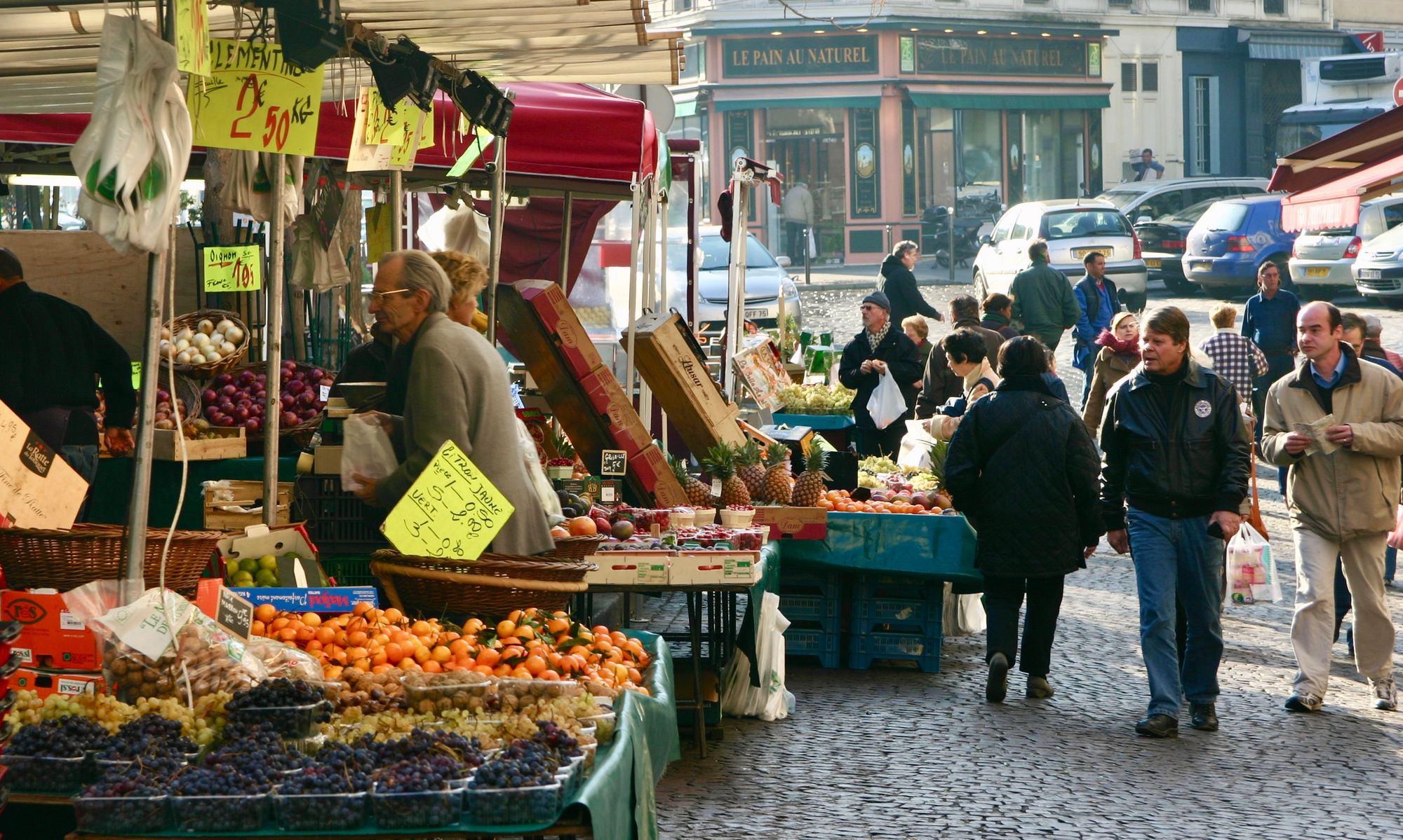 Paris has many neighborhood streets full of streets that people can spend a lot of time in. Everything is on display, much of it spilling onto the sidewalk, and the experience of shopping is a joy.